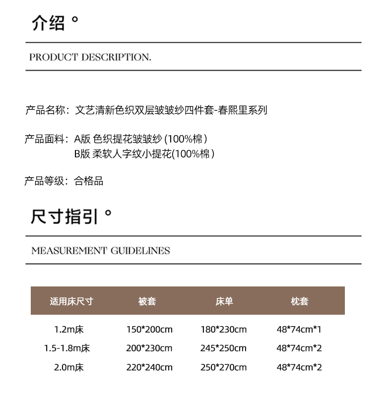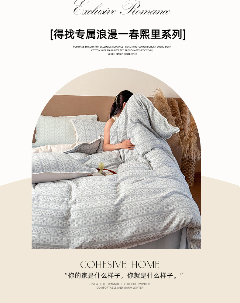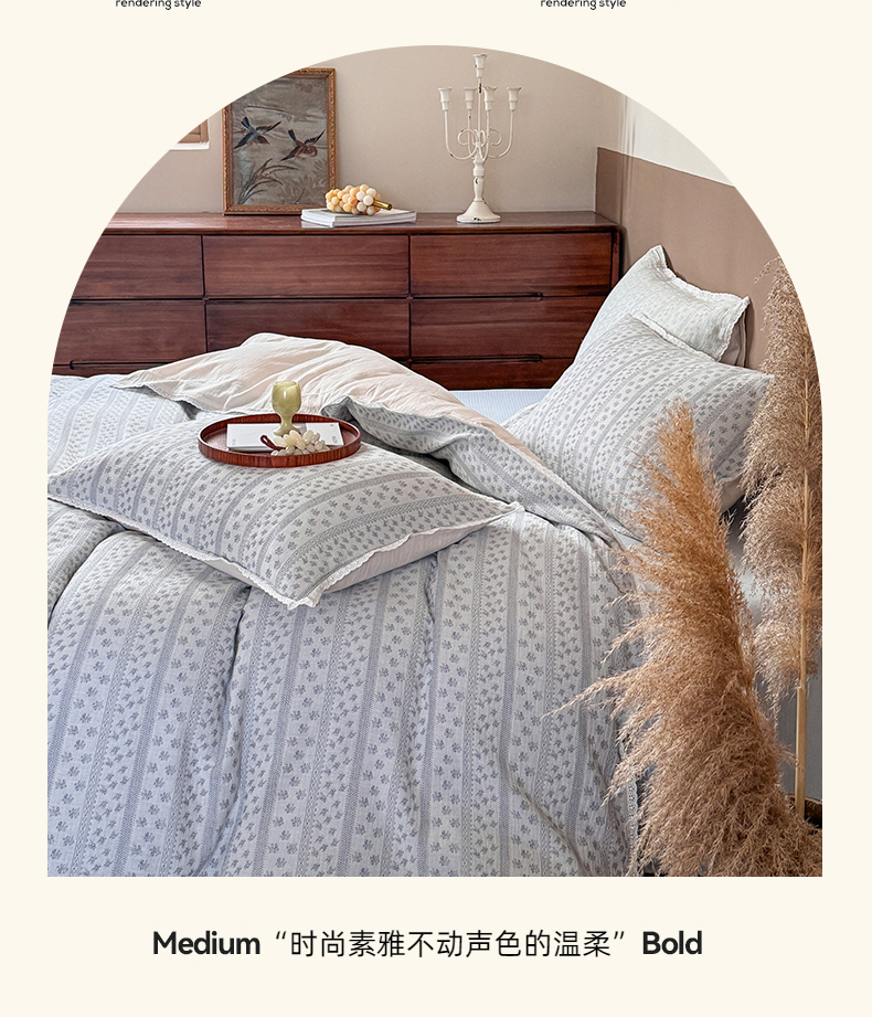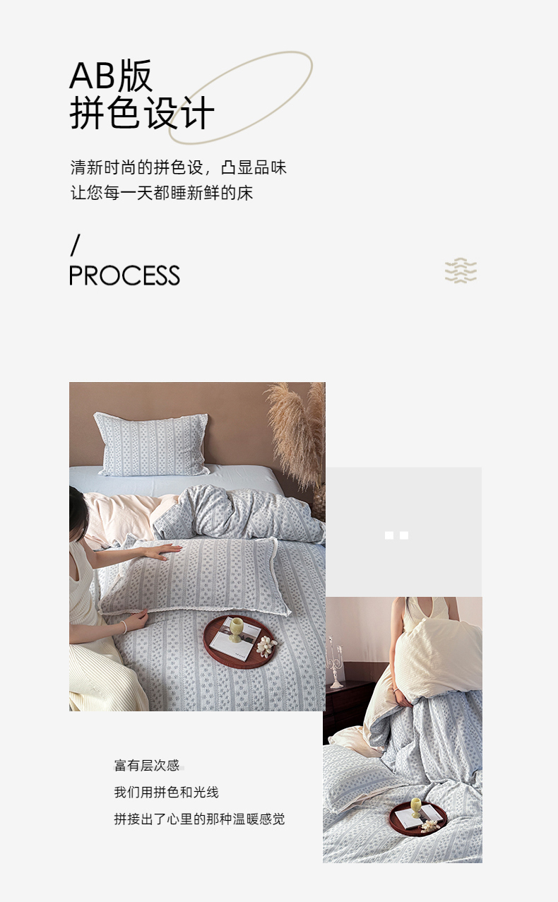 (总)玛奇朵 2025秋冬新品韩国色织A类三层皱皱纱系列四件套,山屿,时序,巷往