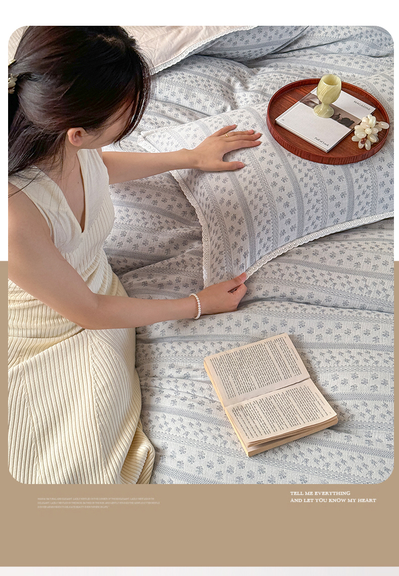 玛奇朵 2025新品文艺清新色织双层皱皱纱四件套-春熙里系列 春熙里-蓝