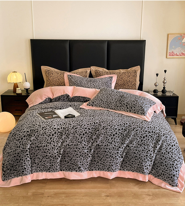 当前位置: 91家纺网 > 商品网购 > 床品套件 > 四件套 > 牛奶绒四件套 > 库里梦家纺 2025新款网红直播爆款獭兔毛豹纹-A版兔毛绒B版牛奶绒四件套-豹纹 豹纹-灰