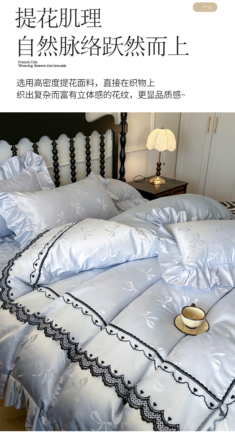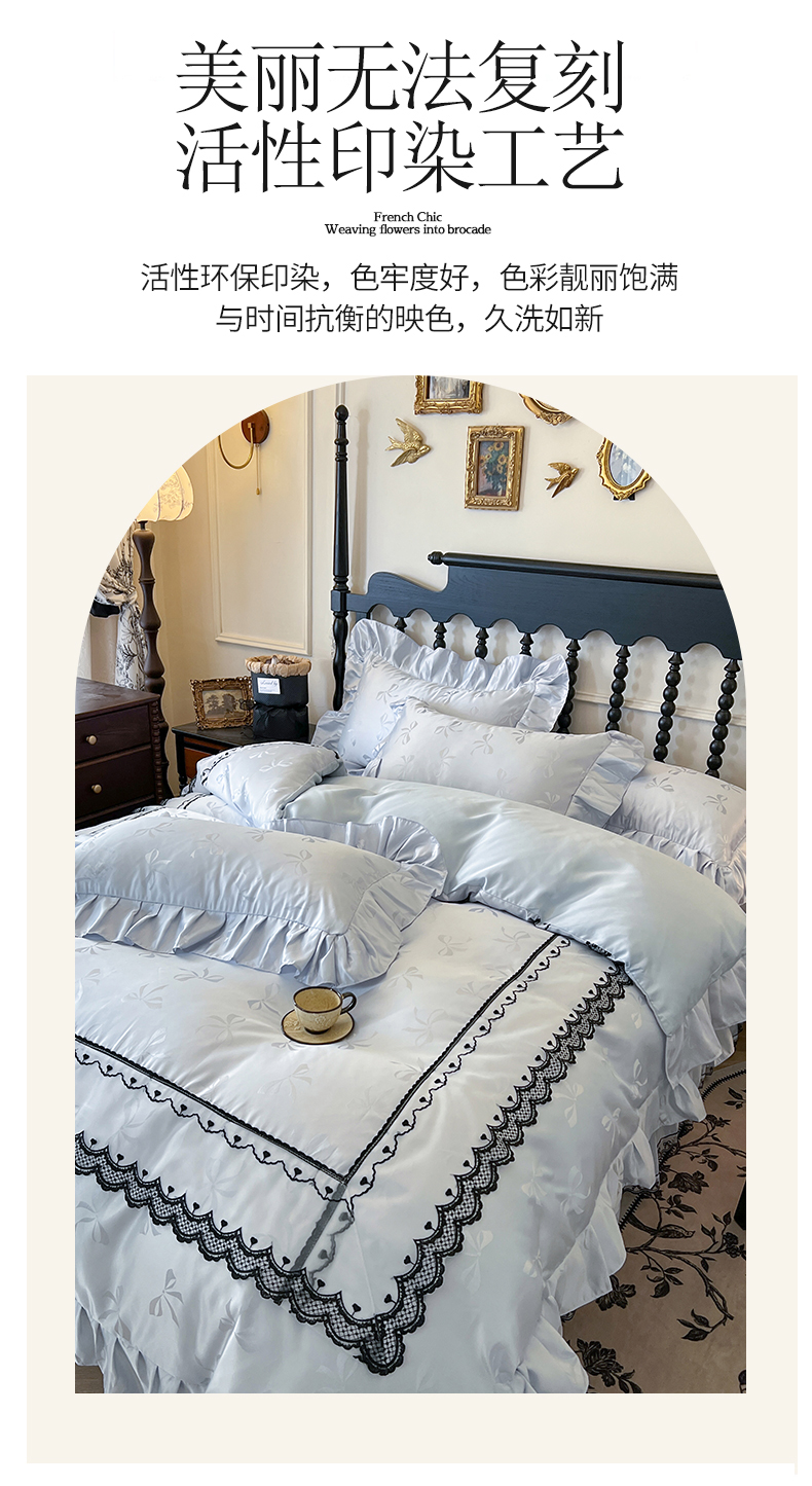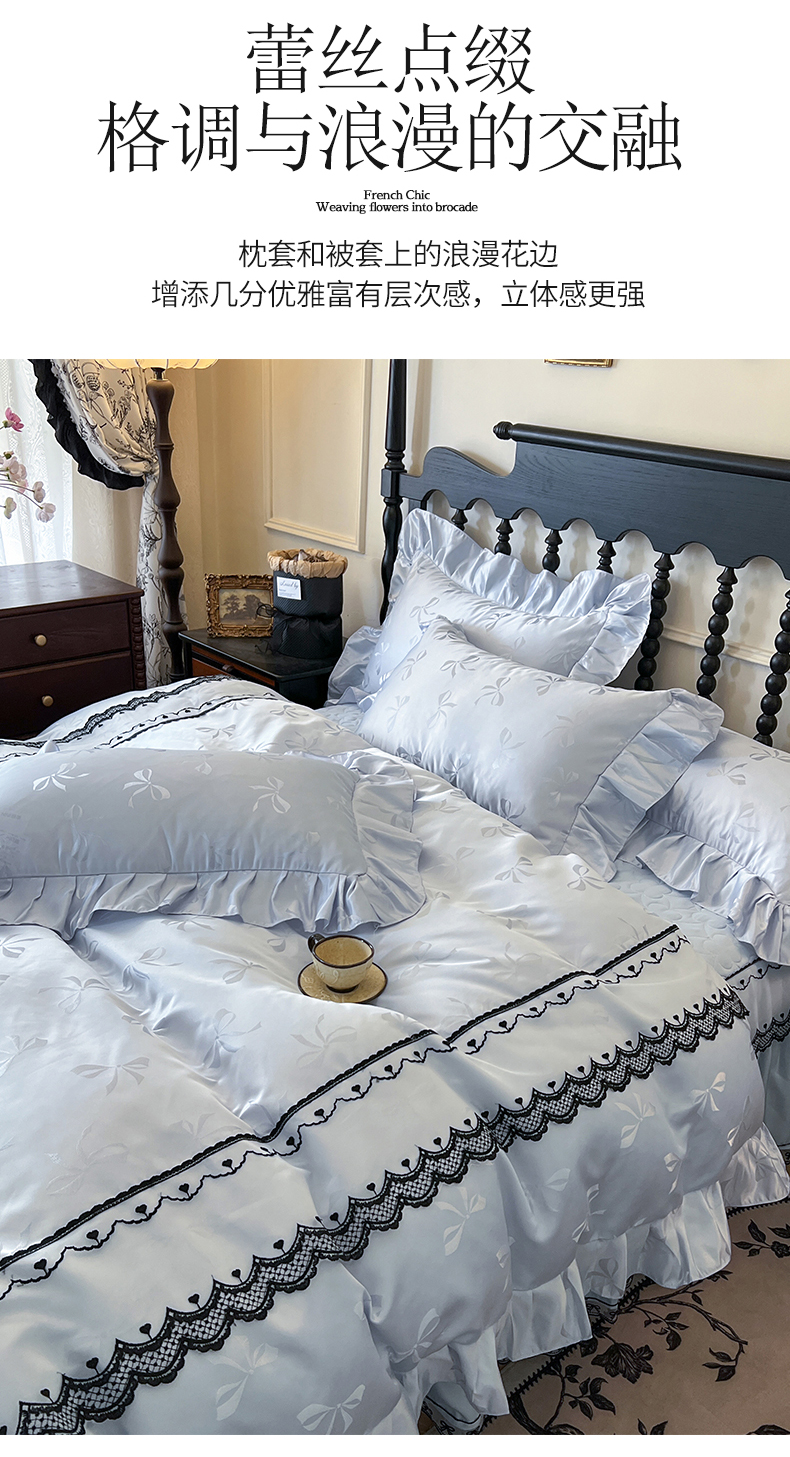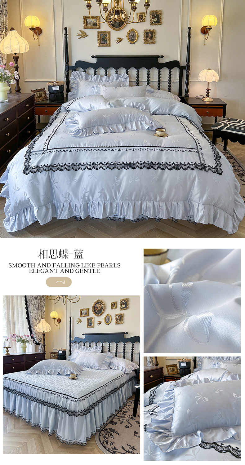 • 91家纺网 家纺一手货源 找家纺 网红馆(ck家纺)2025新款提花蕾丝边床裙四件套-相思蝶 相思蝶-蓝