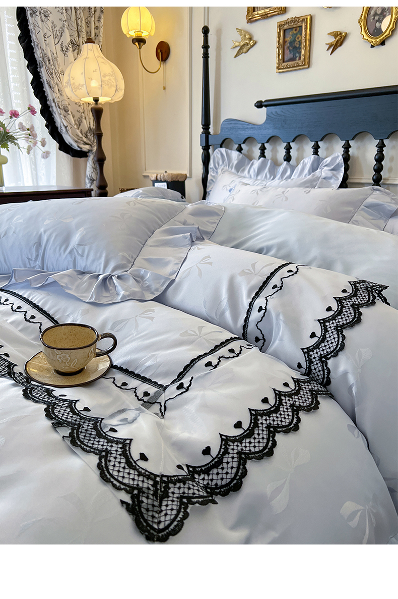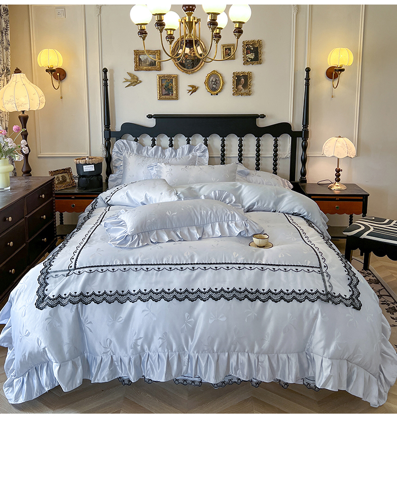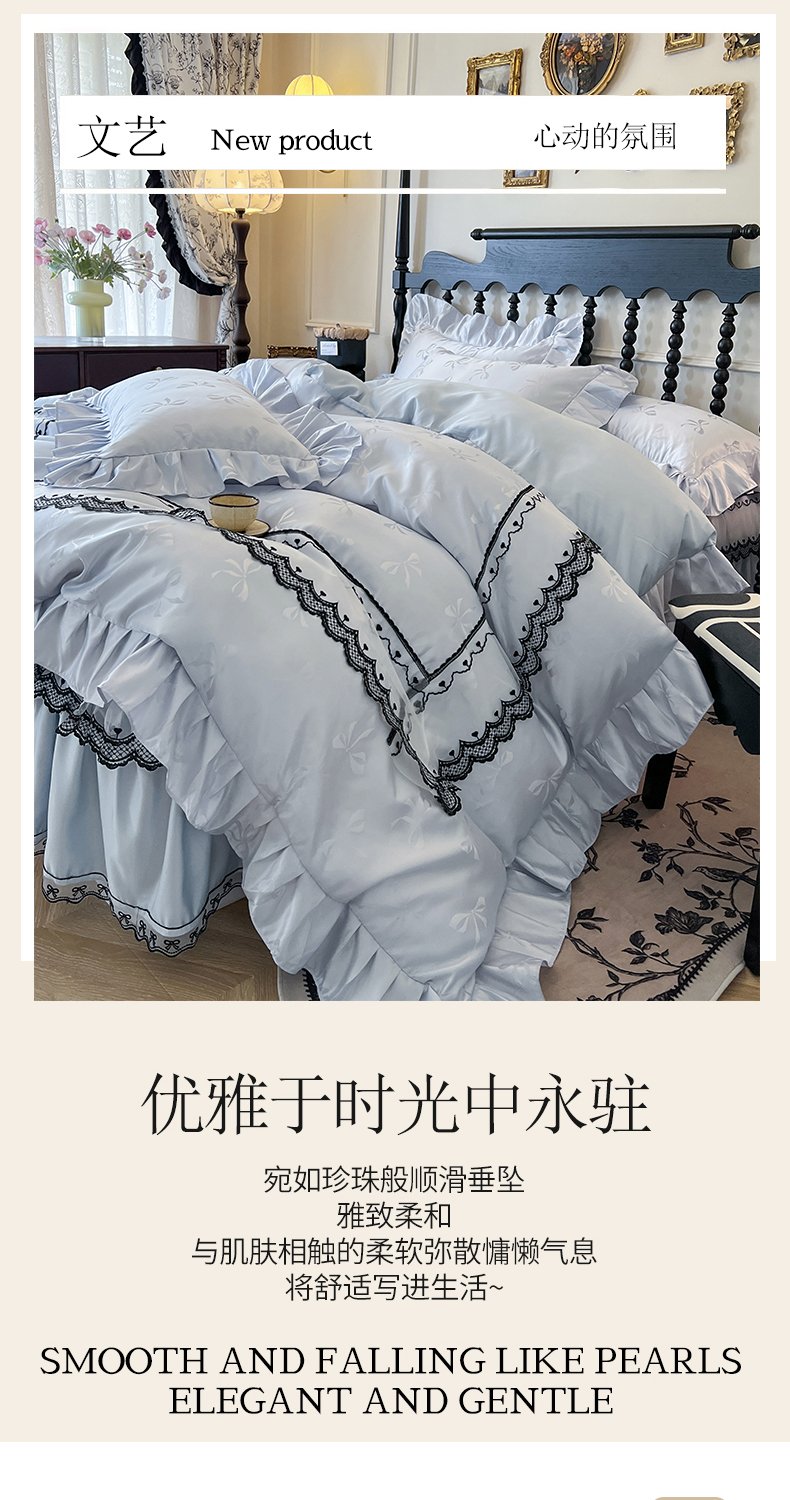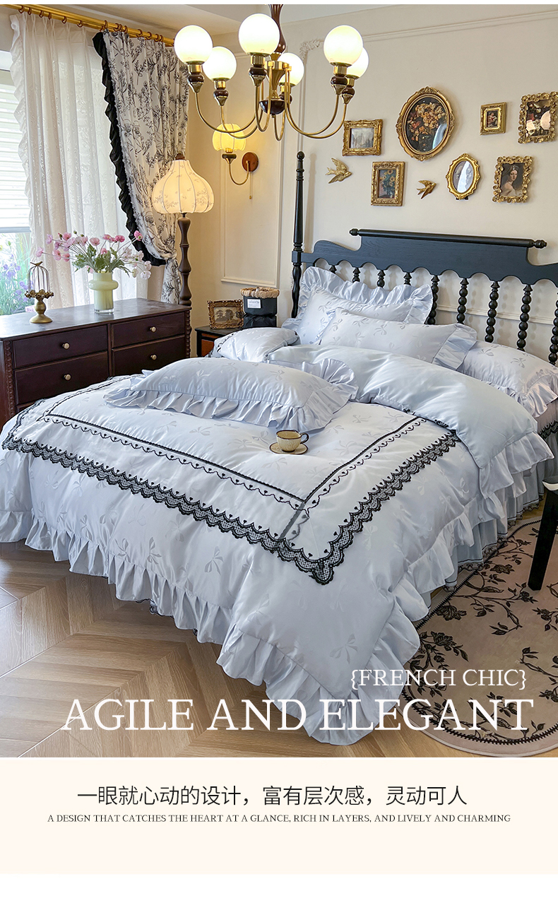 • 91家纺网 家纺一手货源 找家纺 网红馆(ck家纺)2025新款提花蕾丝边床裙四件套-相思蝶 相思蝶-蓝