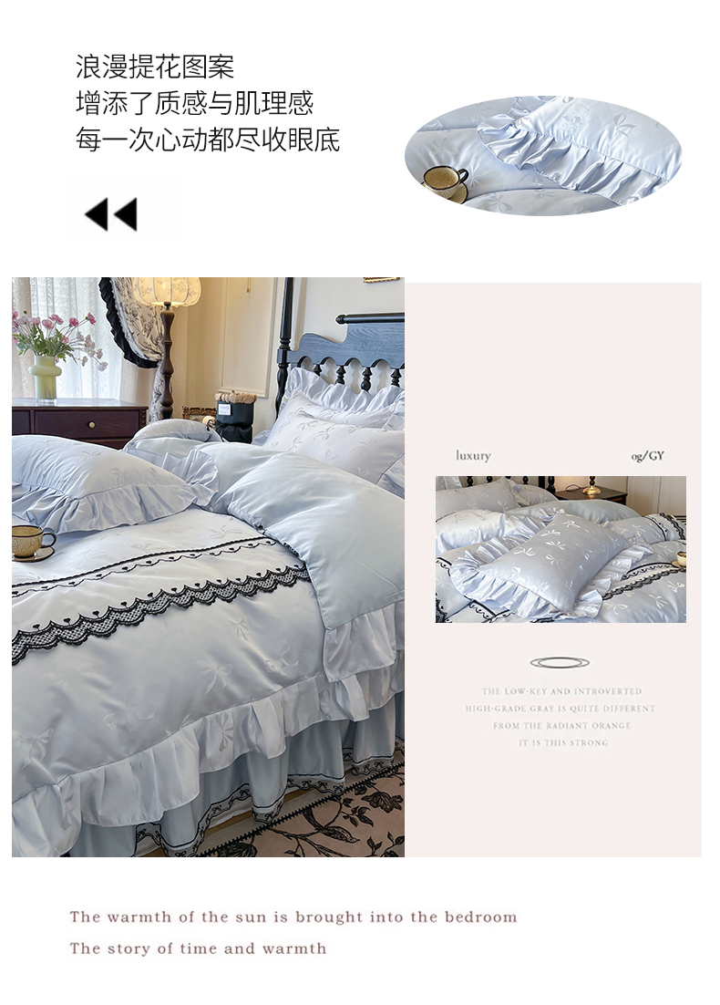 • 91家纺网 家纺一手货源 找家纺 (总)网红馆(ck家纺) 2026新款色织蕾丝边床裙款床笠,宝石蓝,黛绿色,浪漫紫,奶茶色,石青,香妃粉,烟熏灰
