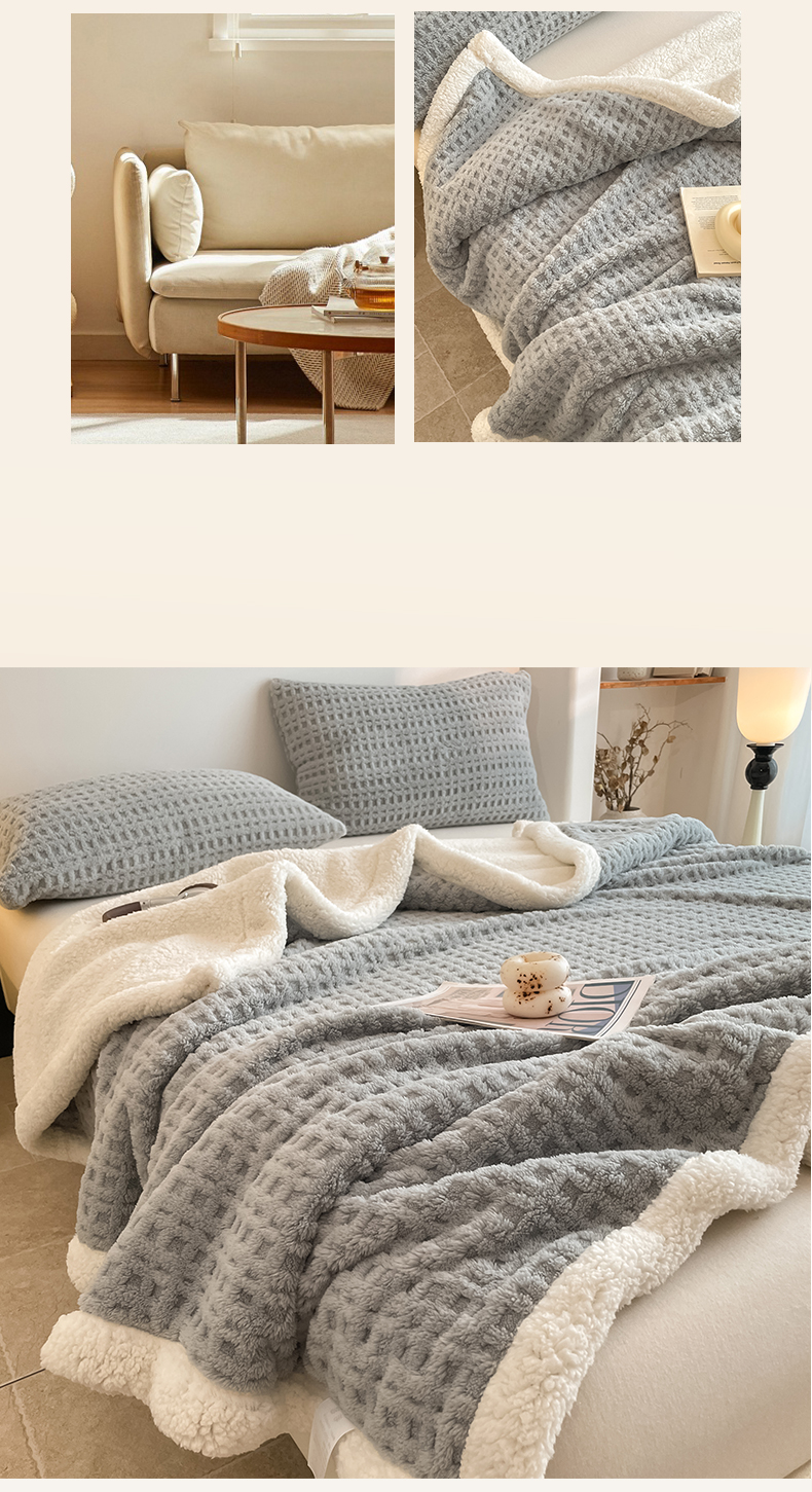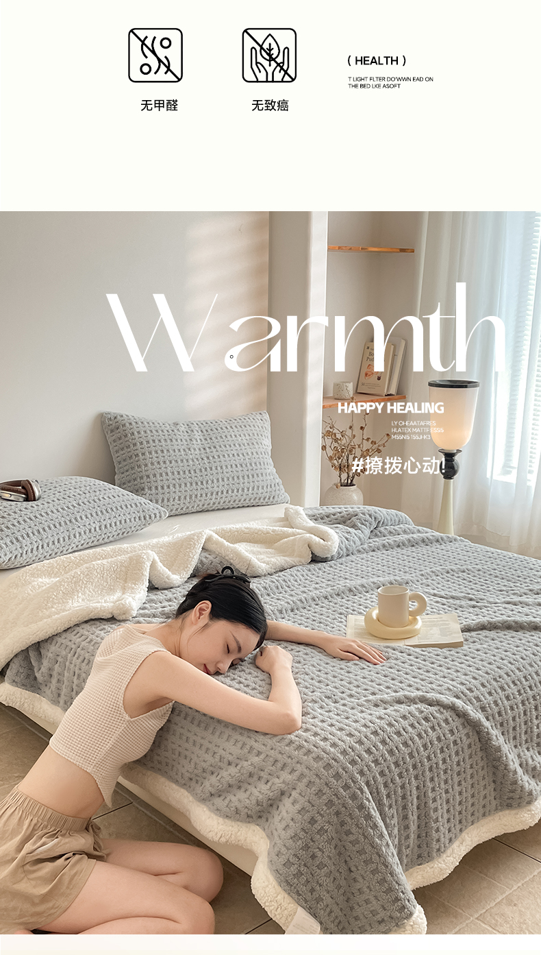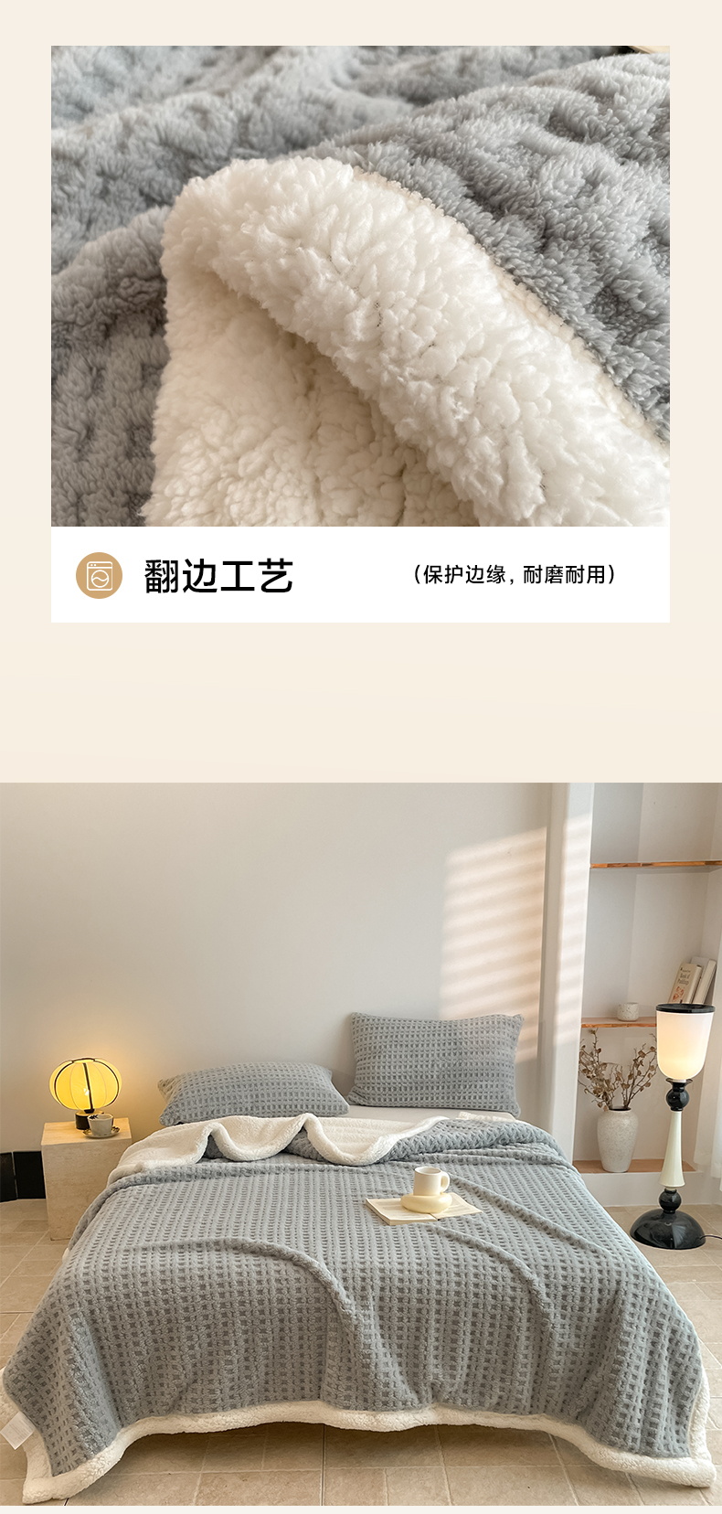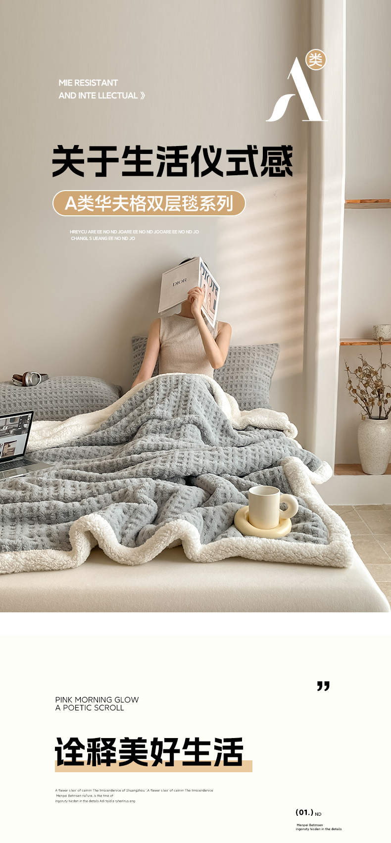 欧邦 2025新款华夫格双层毯盖毯毯子-场景1 华夫格-烟灰