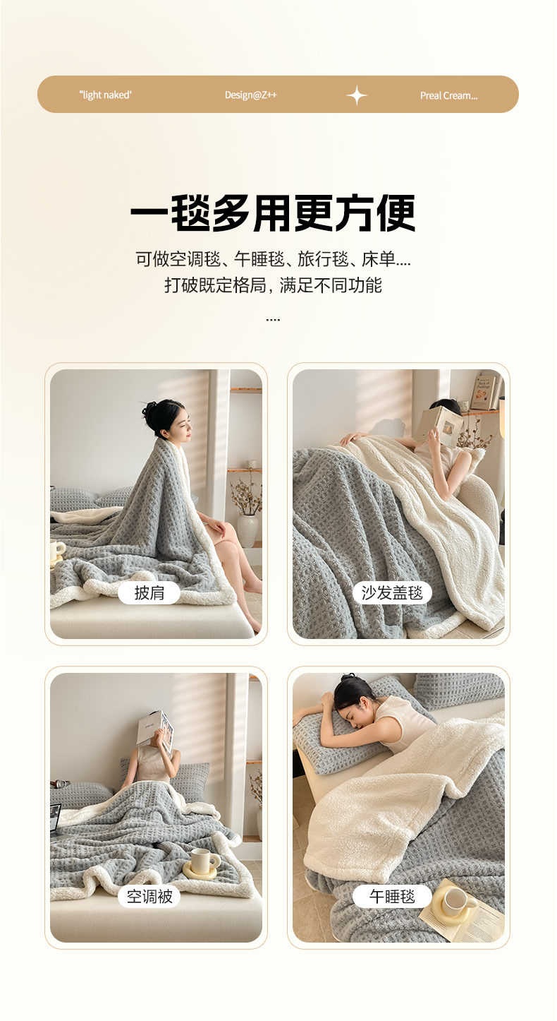 (总)欧邦 2025新款提花暖阳绒羊羔绒毛毯多功能盖毯-梦境系列,梦境-粉玉,梦境-幻白,梦境-米驼,梦境-桑绿,梦境-雾灰