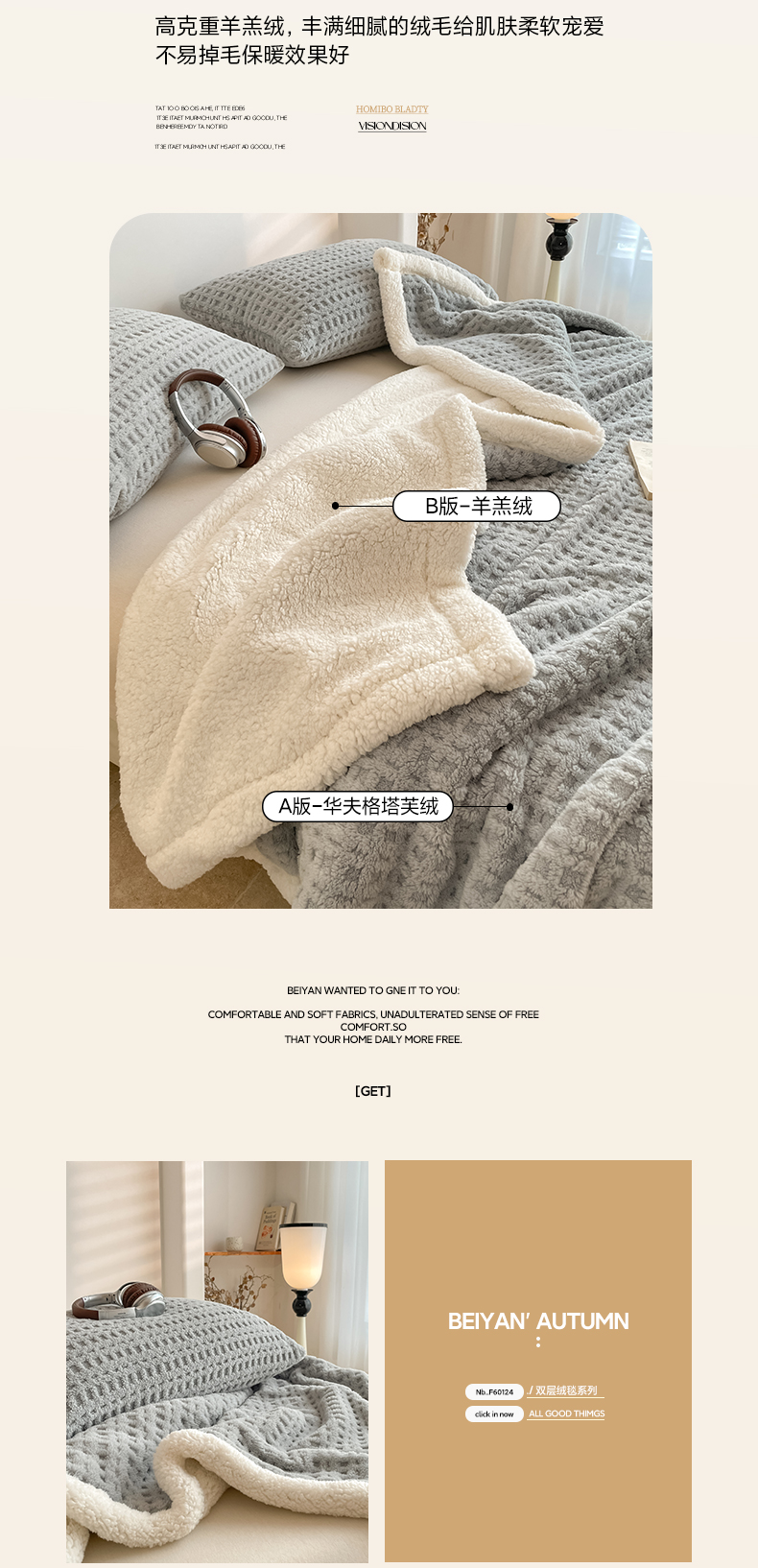 商品名称:欧邦 2025新款华夫格双层毯盖毯毯子-场景1 华夫格-烟灰