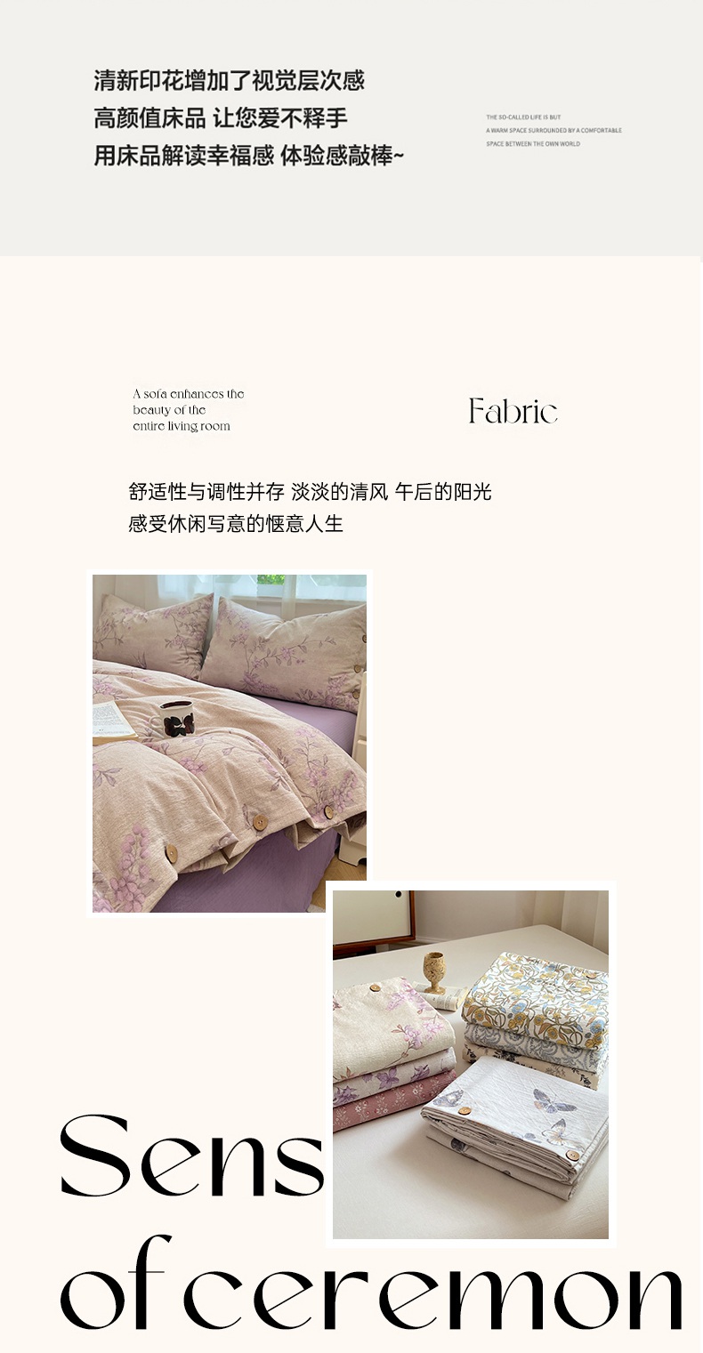 (总)优佳优品 2025新款高克重云感双层纱印花四件套,彩条心梦,彩心萌踪,彩韵甜橙,蝶语素织,格莓柔居,格韵雅眠,花笺喵韵,花絮柔枝,快乐小象,暖格花町,素织枝影,条语梦栖,小布布,熊花私语,絮语花栖,雅纹枝语,枝兔梦笺,织棕纹韵,紫絮童织,棕心棋语