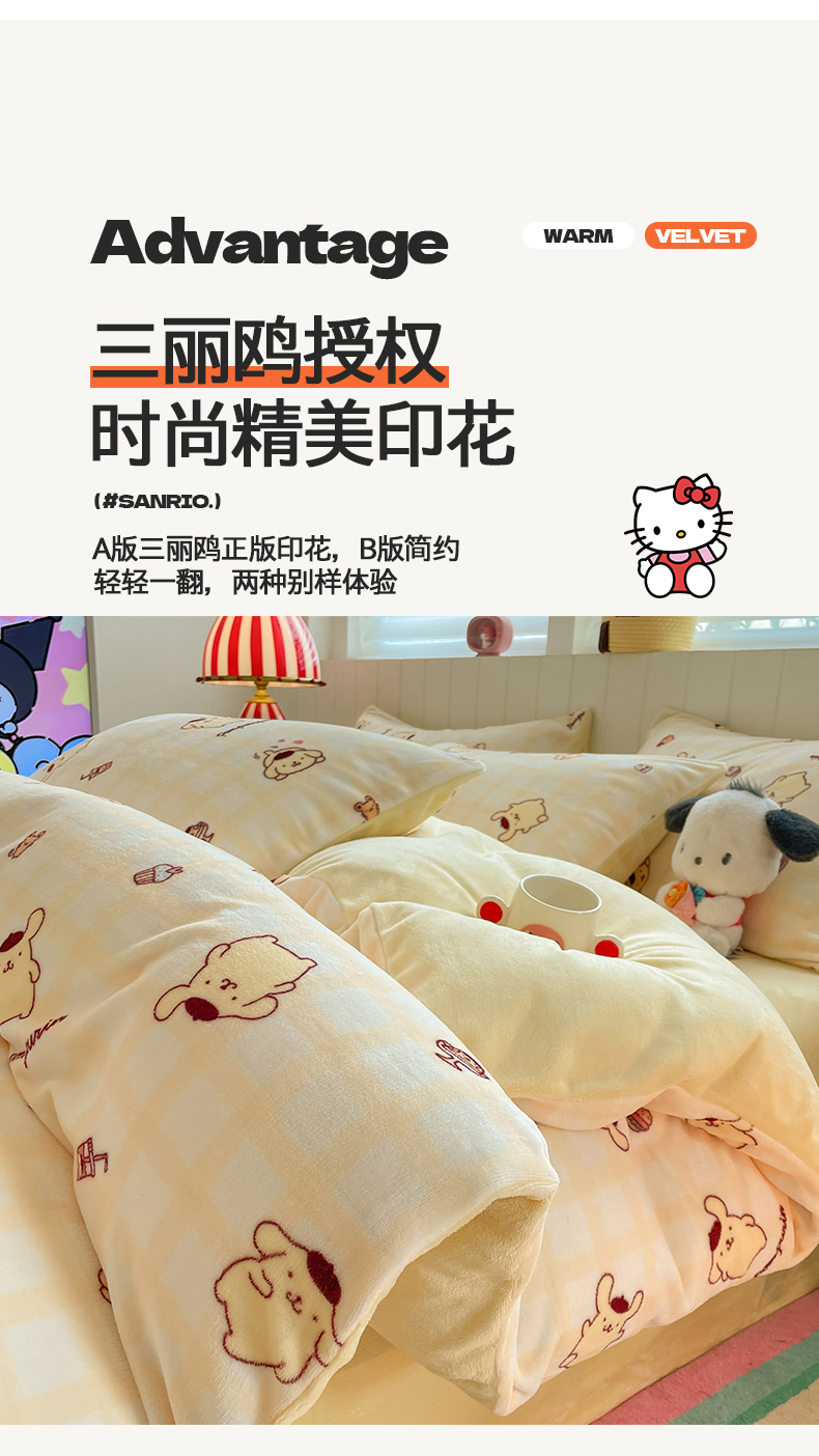 当前位置: 91家纺网 > 商品网购 > 床品套件 > 四件套 > 牛奶绒四件套 > 桃子家居 2025新款A类正版三丽鸥授权卡通加厚高克重牛奶绒系列四件套 绒三丽鸥-黄油布丁狗
