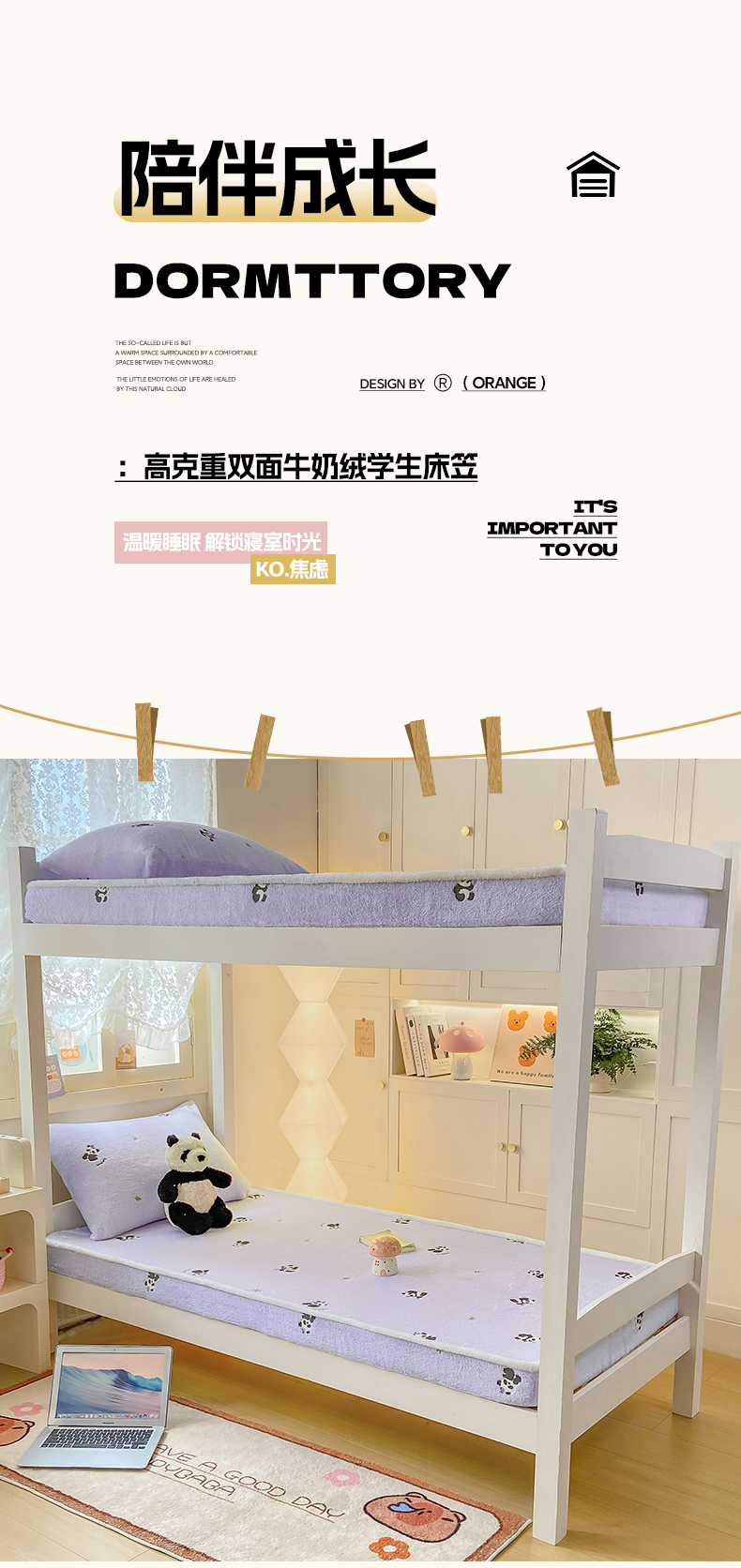 眠势力 2025新款250g双面绒学生床笠单件三件套宿舍上下铺刺绣款牛奶绒床垫保护套 组合图仅供展示不可下单