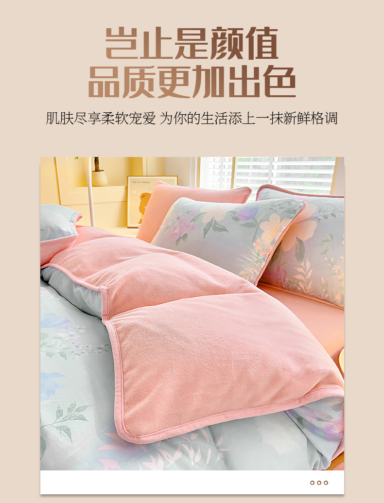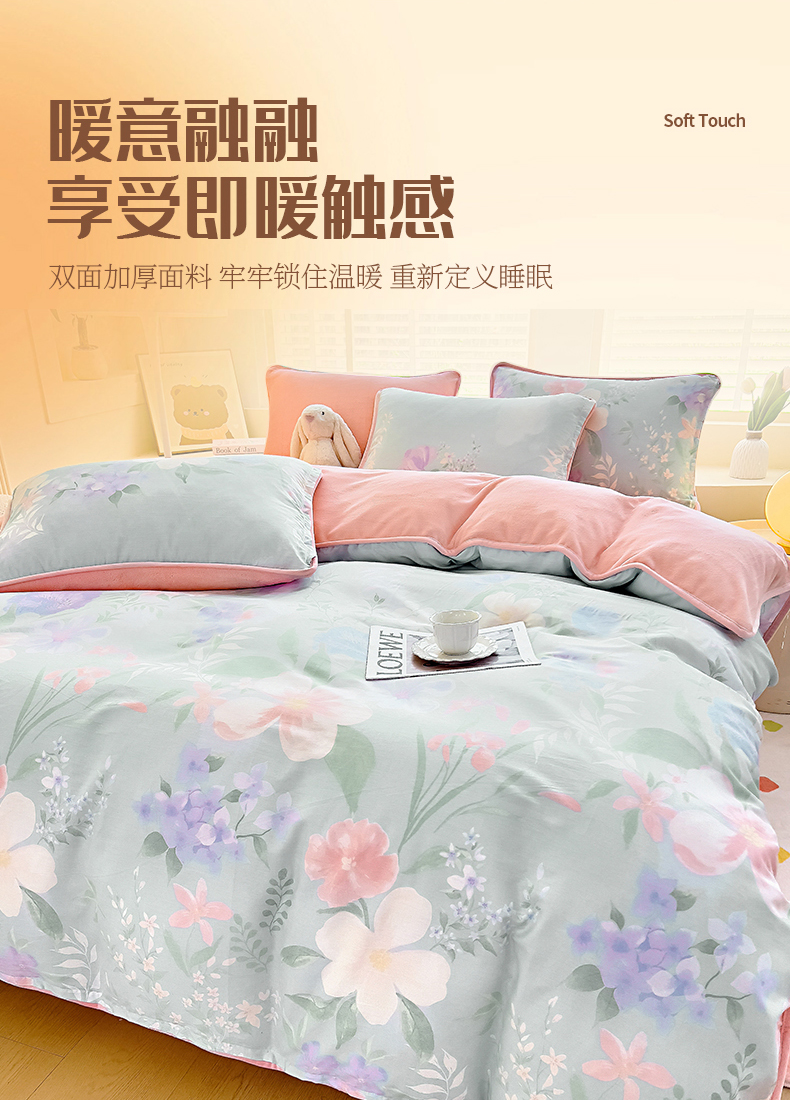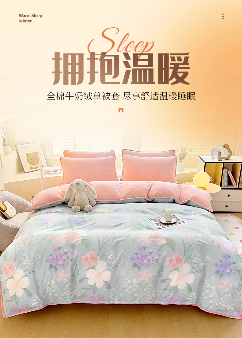 琪琪阁 2023新款A棉B绒棉加绒牛奶绒四件套单被套 宁静生活,宁静生活