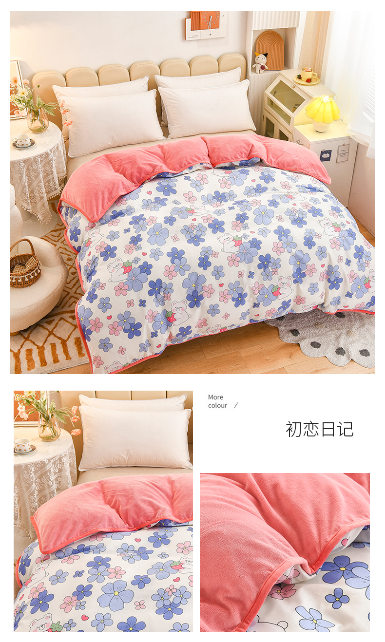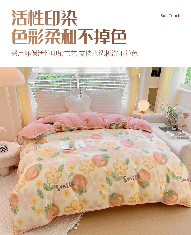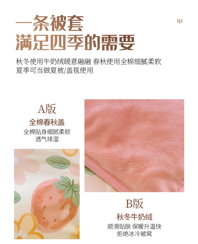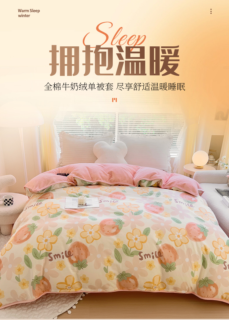 琪琪阁家纺 2025秋冬新款全棉加牛奶绒单被套棉加绒被套 笑脸草莓
