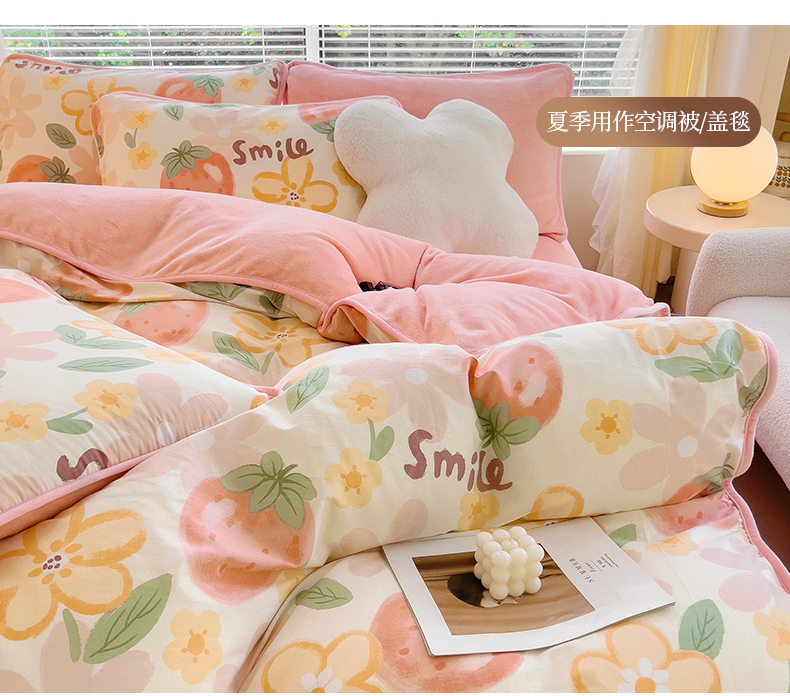 琪琪阁 2023新款A棉B绒棉加绒牛奶绒四件套单被套 笑脸草莓,笑脸草莓