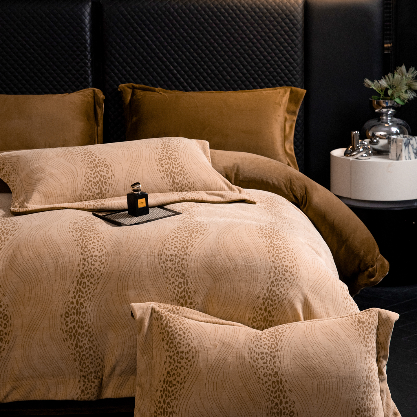 (总)控价 2025新款 专版花型 高克重240克全消光A类印花牛奶绒四件套-有风