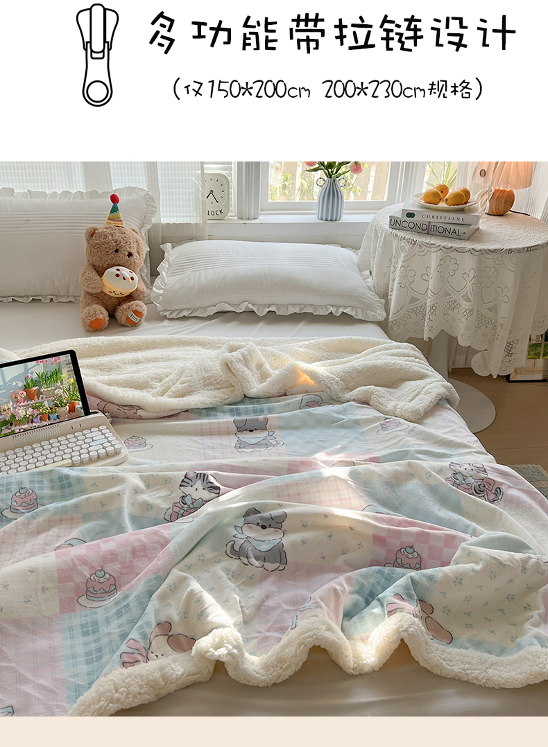 耀悦家纺 2025新款毛毯带拉链被套两用加厚高克重牛奶绒毯子羊羔绒 礼物起司猫咪