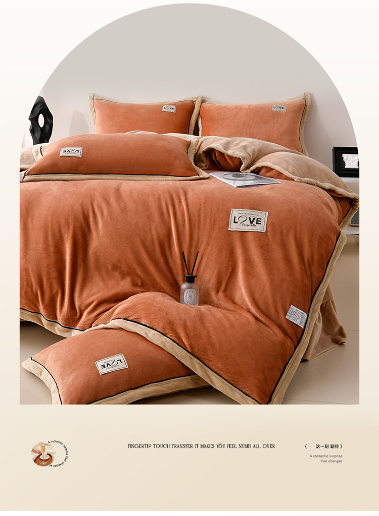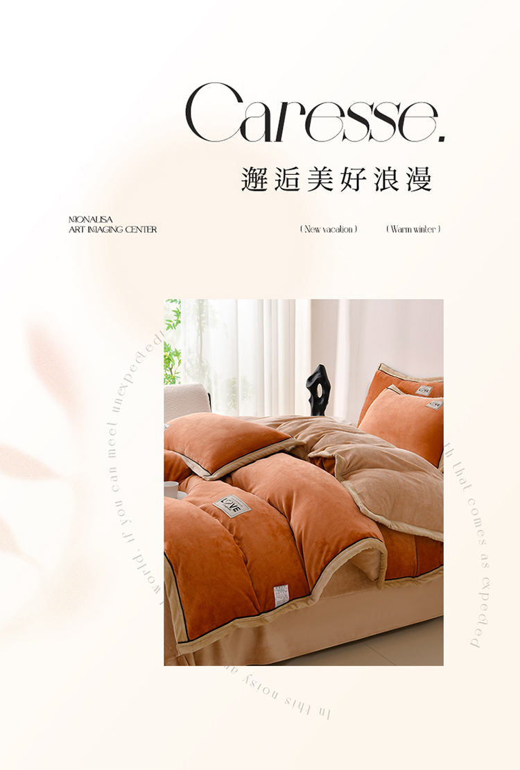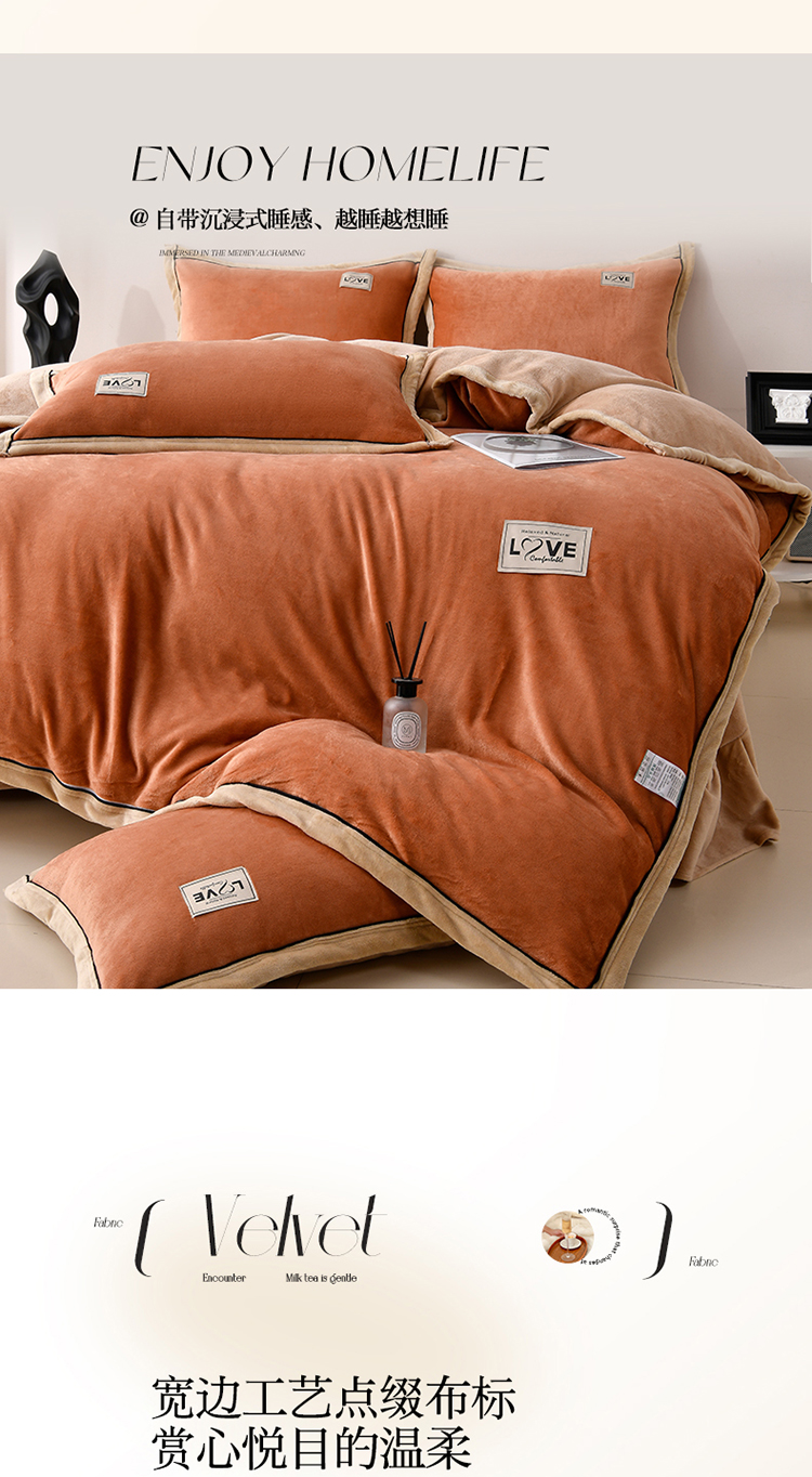 商品名称:馨梦缘-2025新款牛奶绒四件套 焦糖+杏色