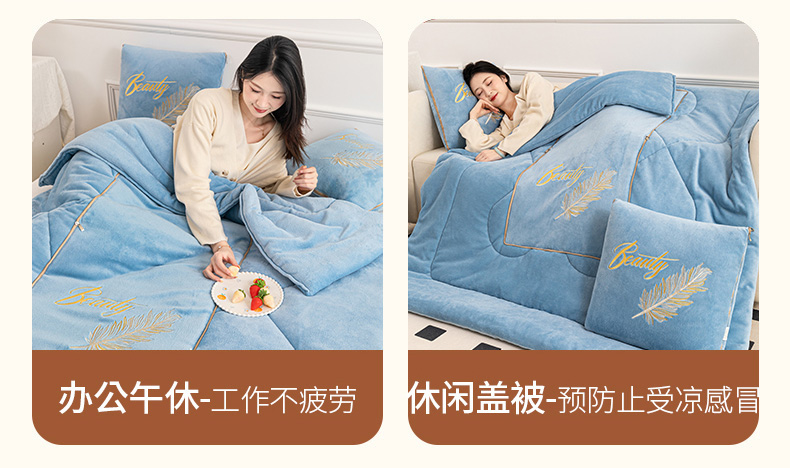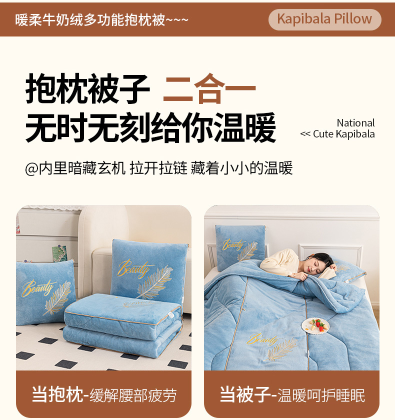 (总)哩哩熊 2025新款抱枕被子两用加厚二合一汽车载枕头办公室午睡毯子冬天靠枕-羽叶,羽叶-宝石蓝,羽叶-奶茶咖,羽叶-浅蓝,羽叶-香芋紫,羽叶-烟灰