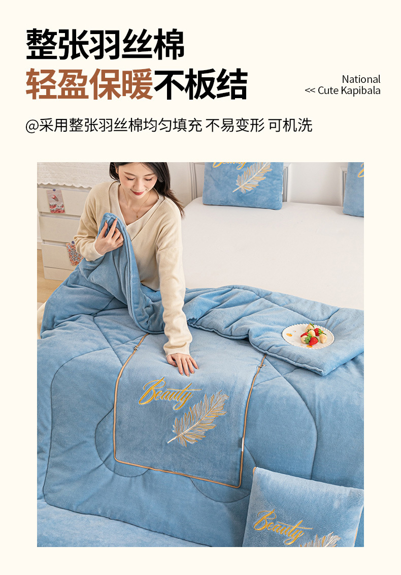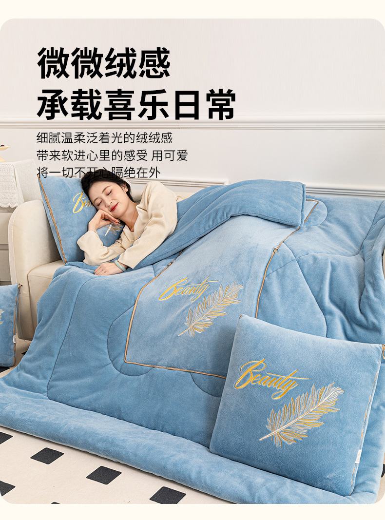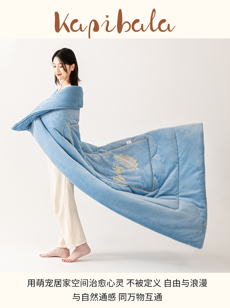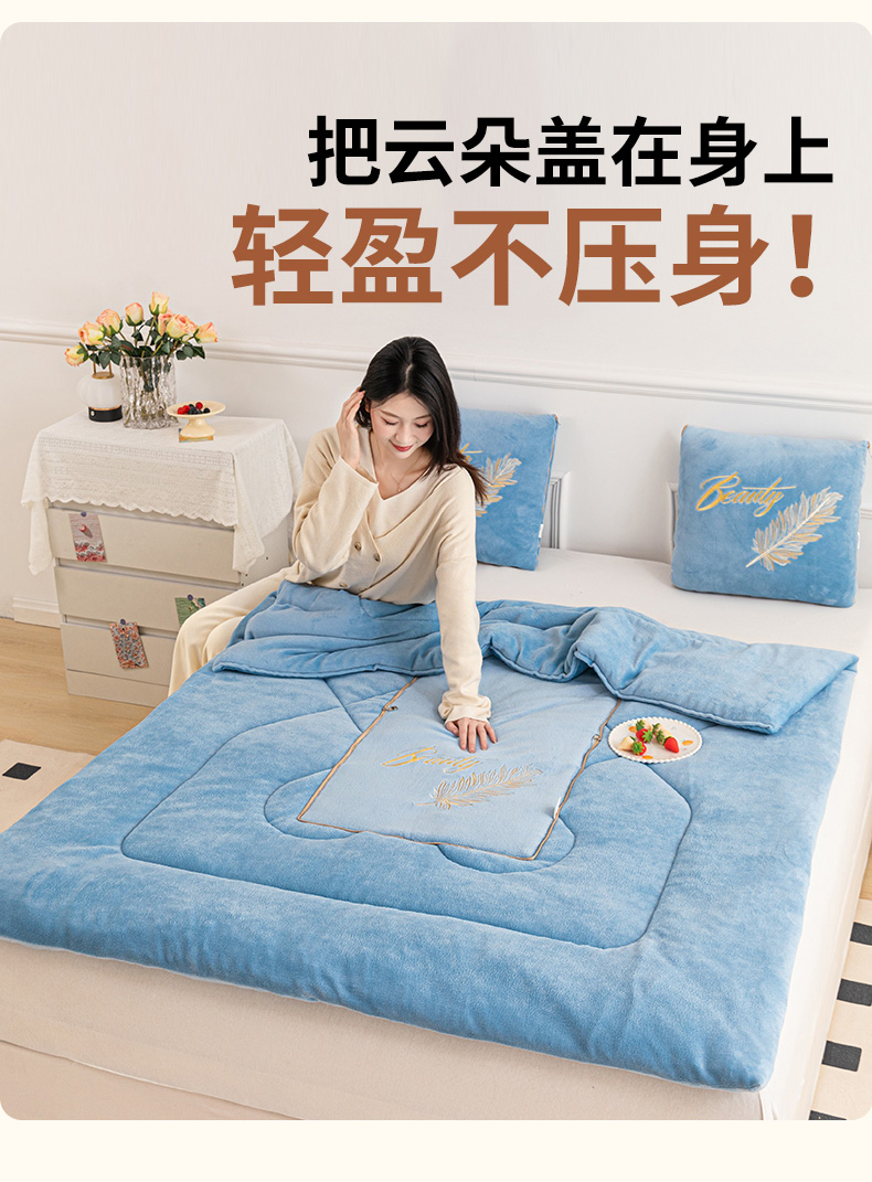 商品名称:哩哩熊 2025新款抱枕被子两用加厚二合一汽车载枕头办公室午睡毯子冬天靠枕-羽叶 羽叶-浅蓝