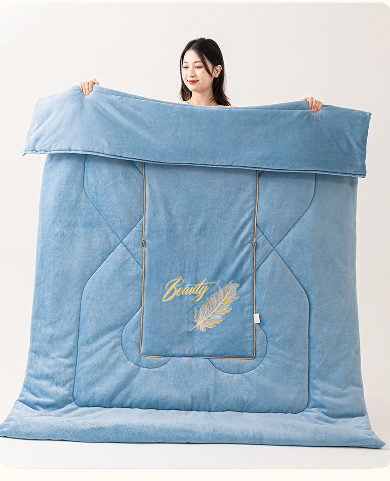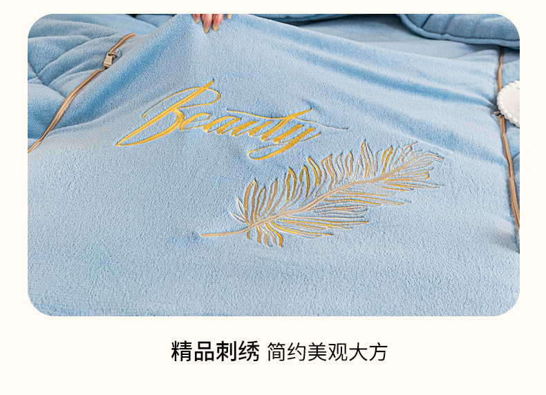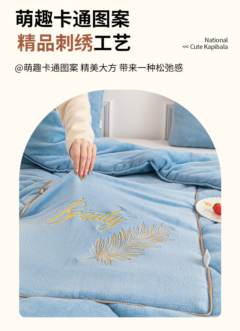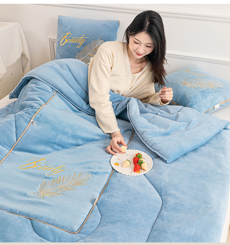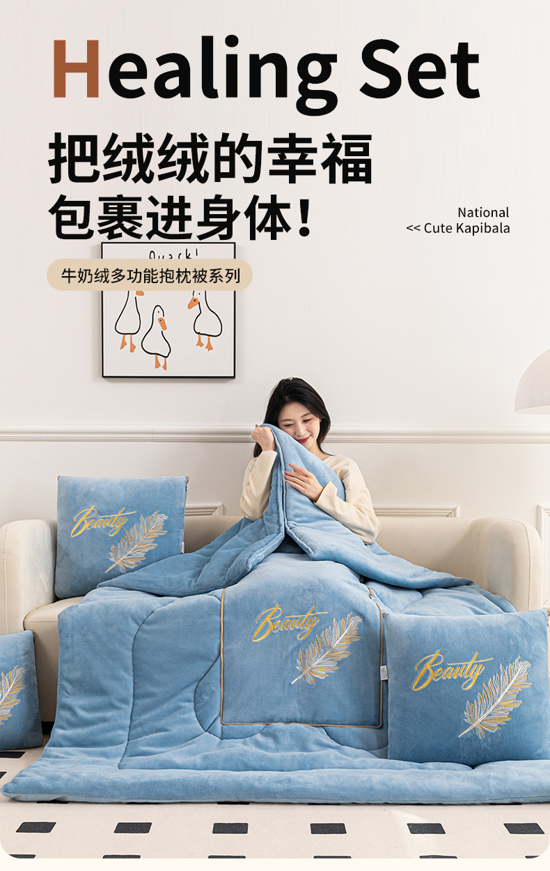 商品名称:哩哩熊 2025新款抱枕被子两用加厚二合一汽车载枕头办公室午睡毯子冬天靠枕-羽叶 羽叶-浅蓝