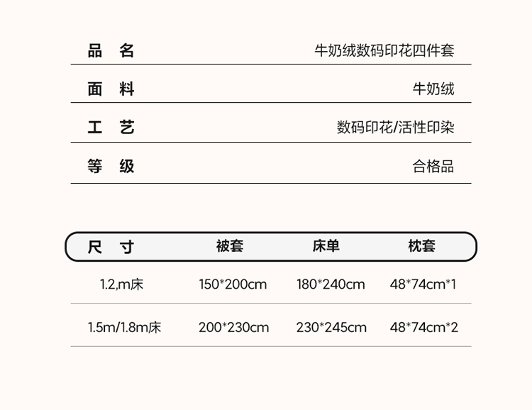 【床笠款】1.8四件套-被套200x230 | ¥105.00 |