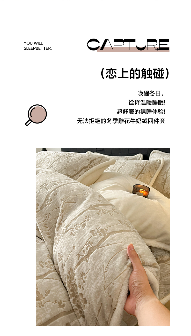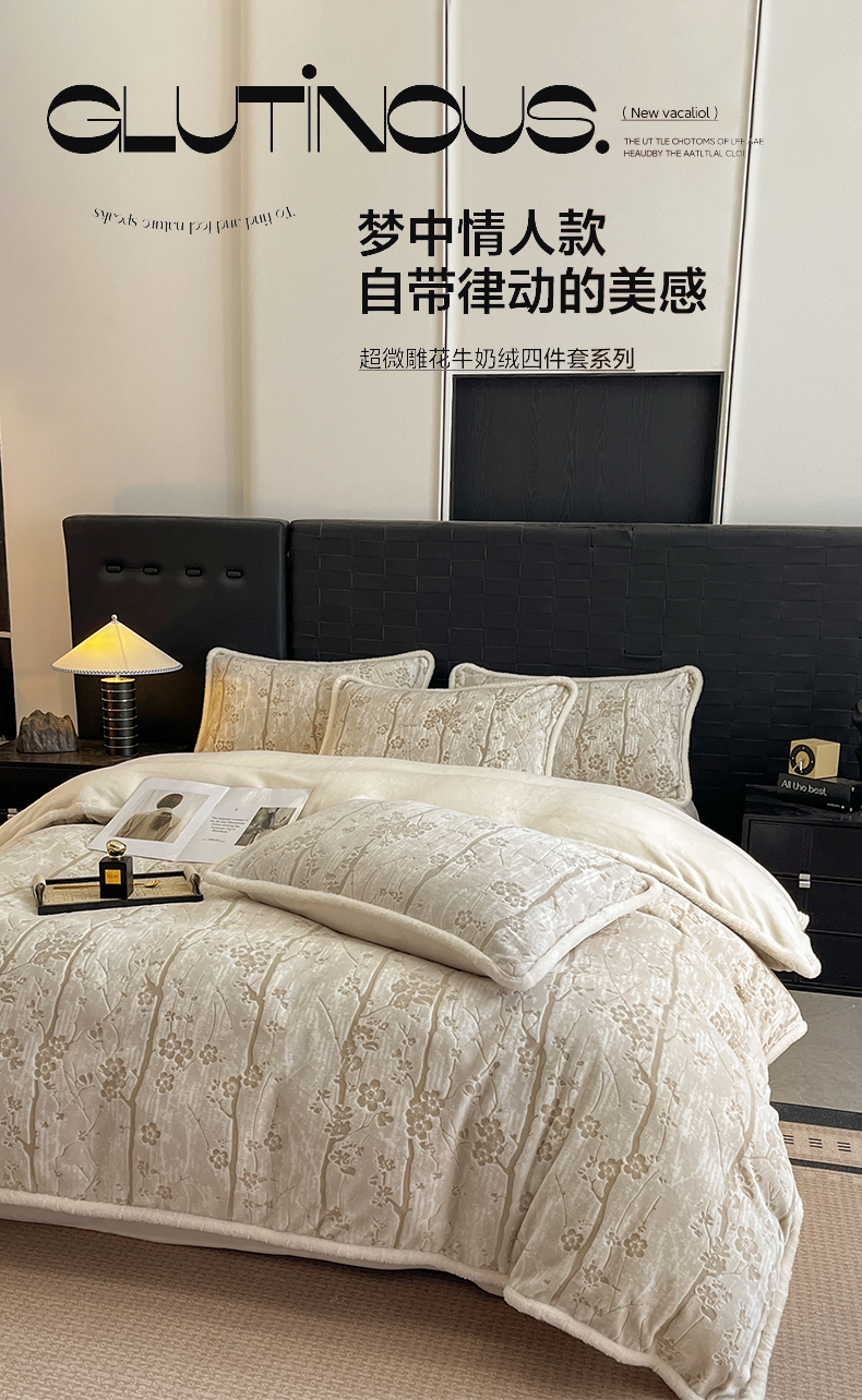 (总)狂想家 2025新款包边加厚雕花牛奶绒四件套,花样年华-卡其,花样年华-深咖,花样年华-玉粉,暖冬-暖冬白,暖冬-香芋紫,暖冬-玉粉