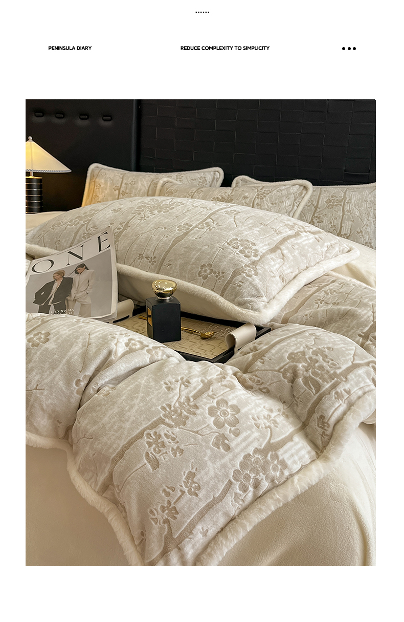 狂想家 2025新款包边加厚雕花牛奶绒四件套 暖冬-暖冬白
