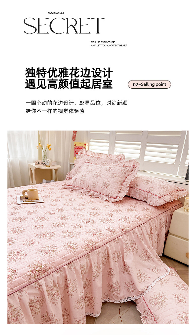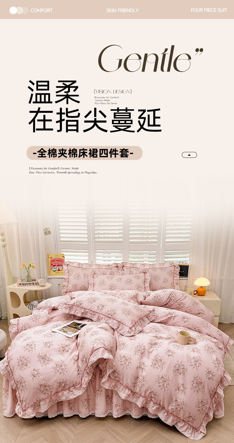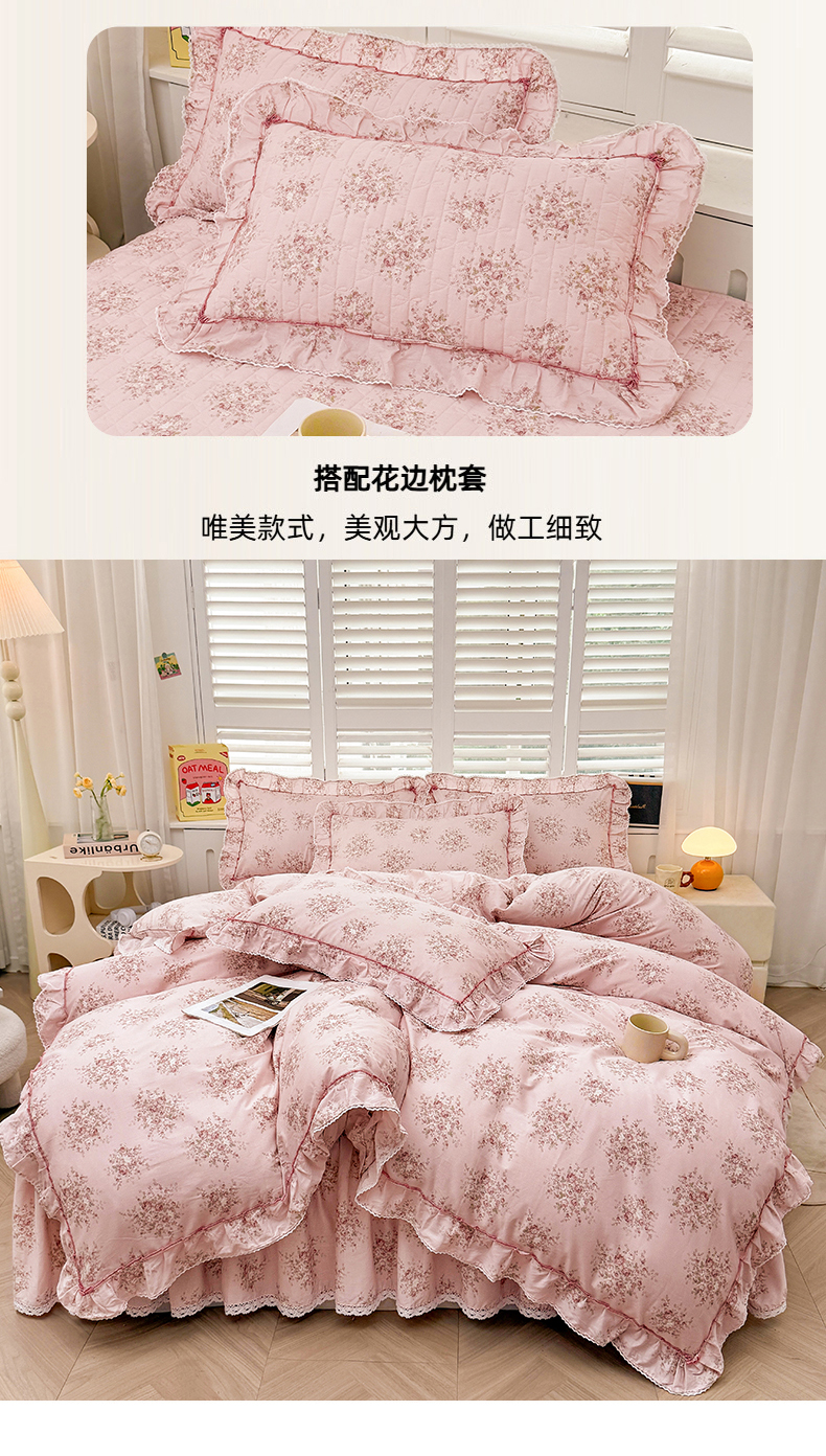(总)缦彩 2025新款全棉纯棉夹棉公主风花边床裙四件套,缤纷绮梦,蒂芙尼,多丽粉,卡曼-粉,雾岛听风-粉,小萝莉