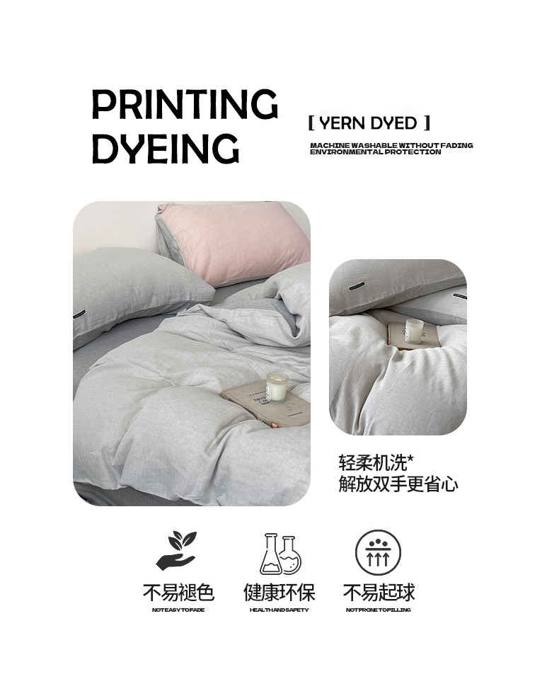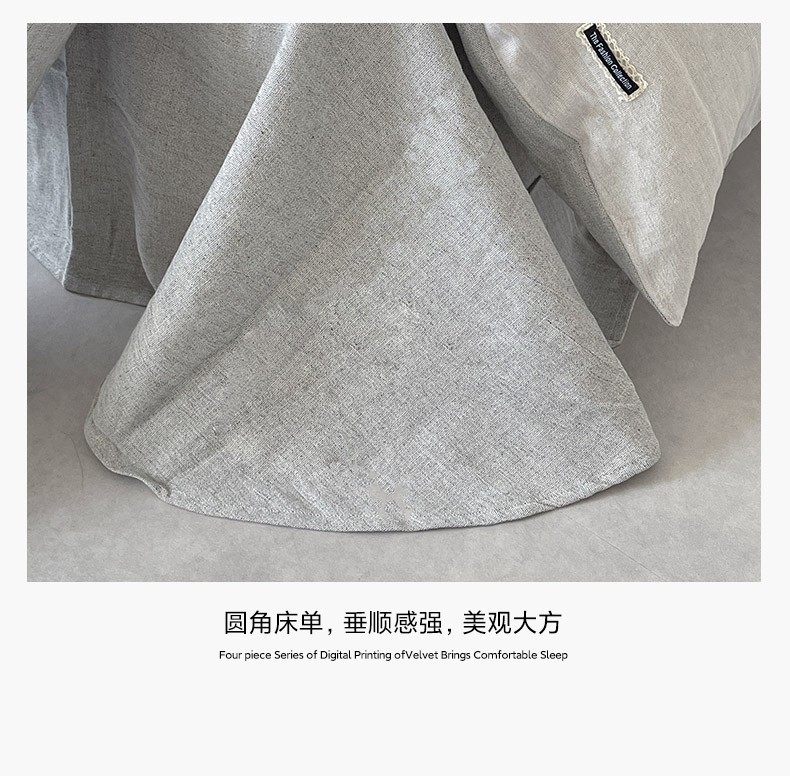 商品名称:2025新款休闲风超柔棉麻四件套简约纯棉全棉复古风素色亚麻高端床上用品四季通用 安缦-灰