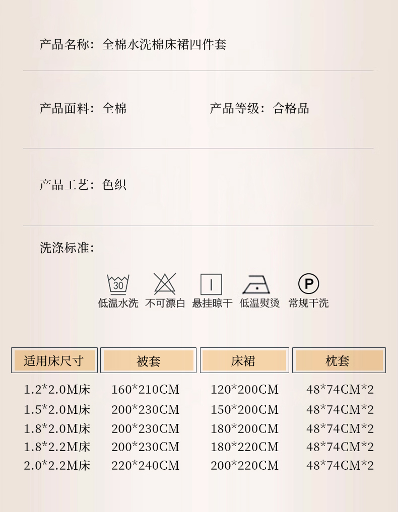 120*200cm床裙四件套 | ¥148.00 |