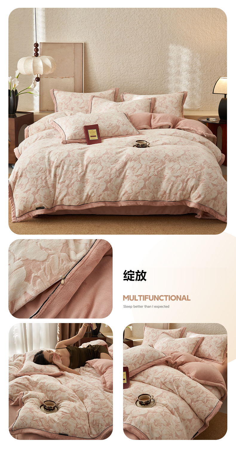 • 91家纺网 家纺一手货源 找家纺 子由家居 2025新款230g牛奶绒染色雕花可拆洗被套冬被 雕花被套-玛雅