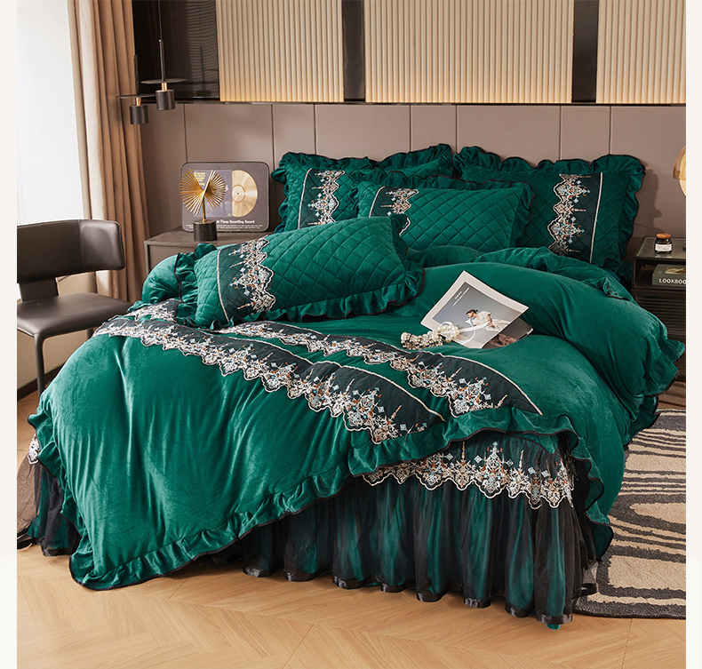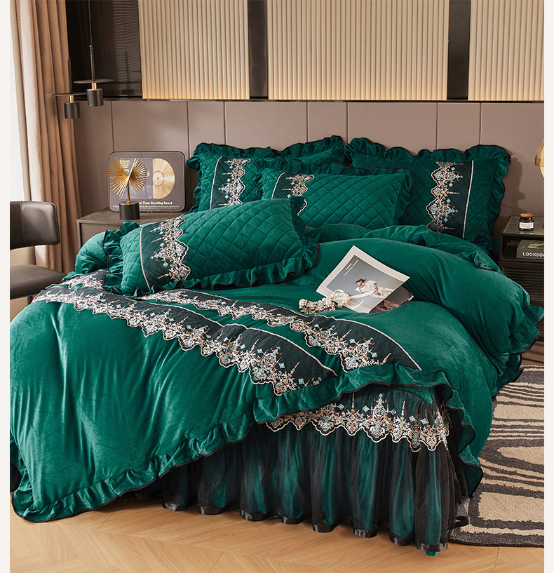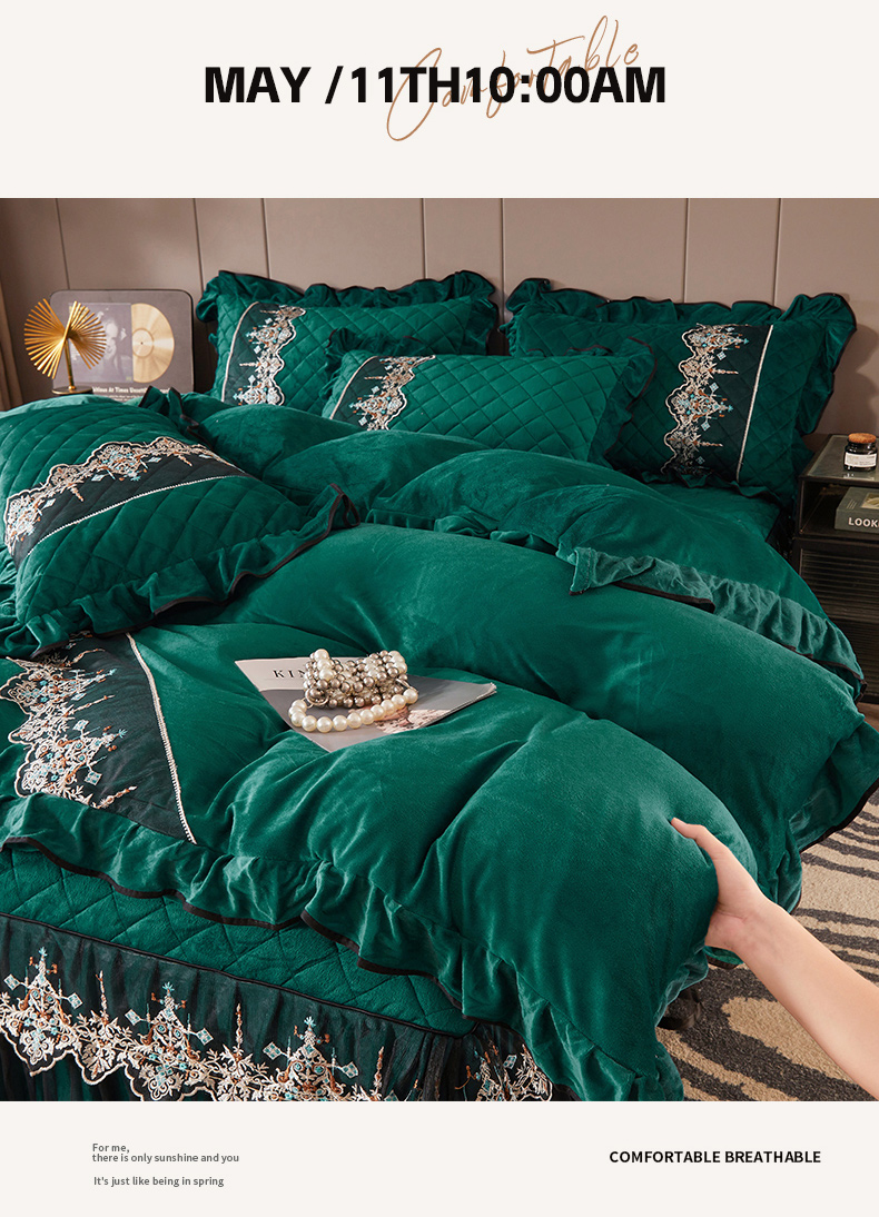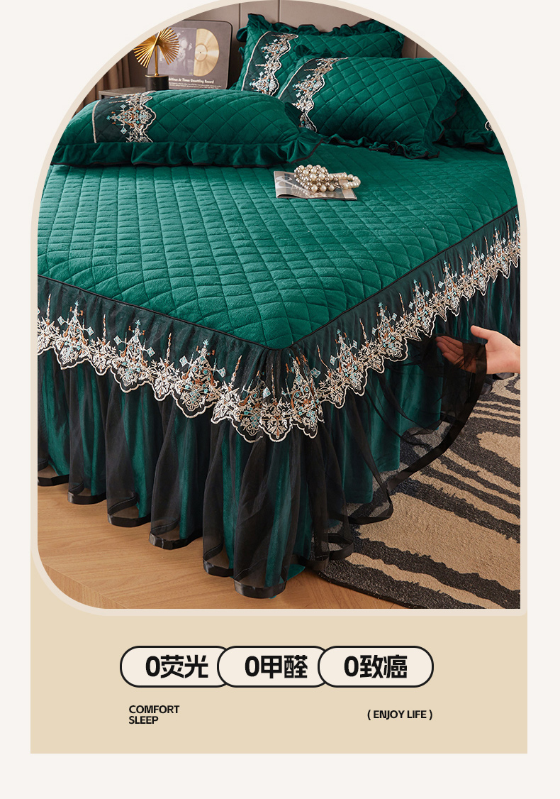 当前位置: 91家纺网 > 商品网购 > 床品套件 > 四件套 > 水晶绒四件套 > 恋尚 2025新款水晶绒保暖床裙四件套-梵蒂莎(控价) 梵蒂莎-绿