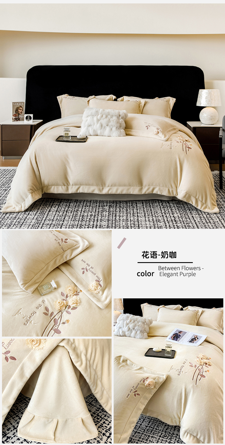席之家 2025新款刺绣牛奶绒四件套-花语 花语-奶咖