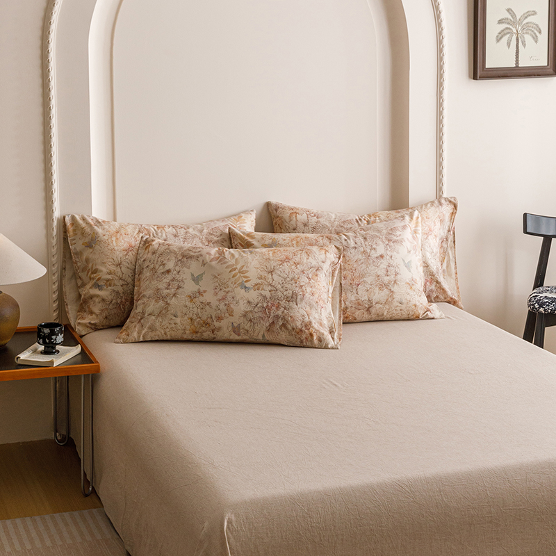 (总)爱思佳 2025新款棉麻数码印花单品床笠床笠单件-单床笠,本色,粉色,灰色,咖色,绿色