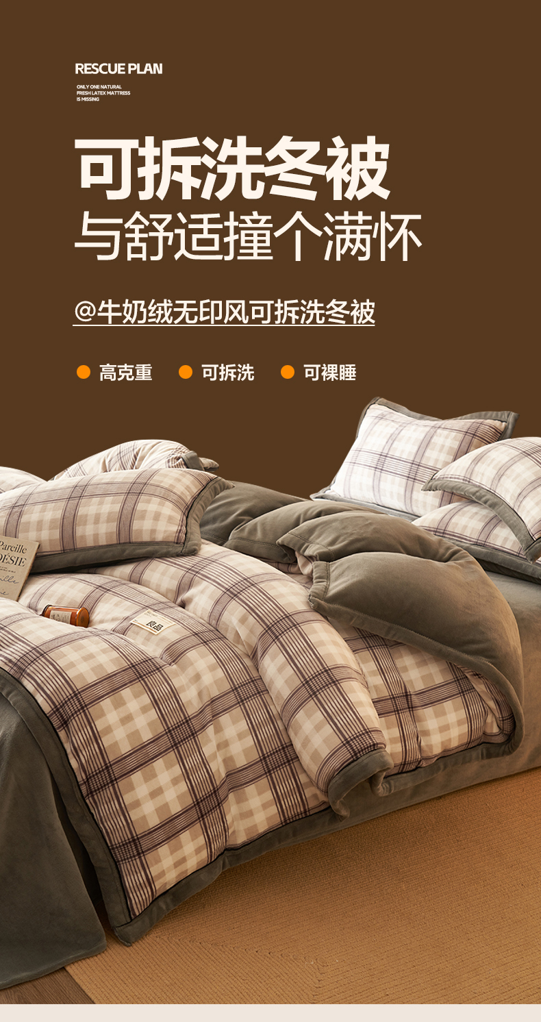 • 91家纺网 家纺一手货源 找家纺 子由家居 2025新款牛奶绒无印风可拆洗冬被被子被芯 洛卡灰格
