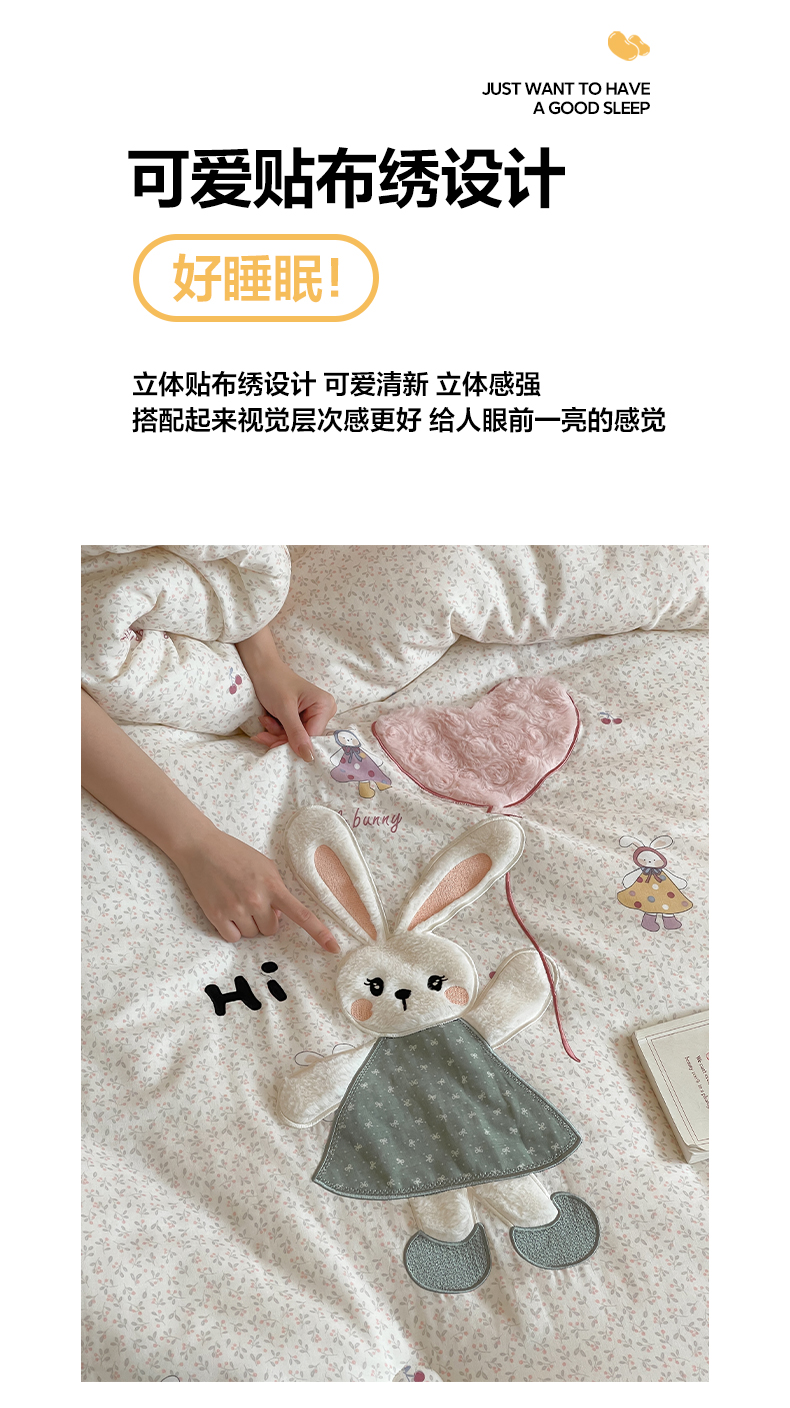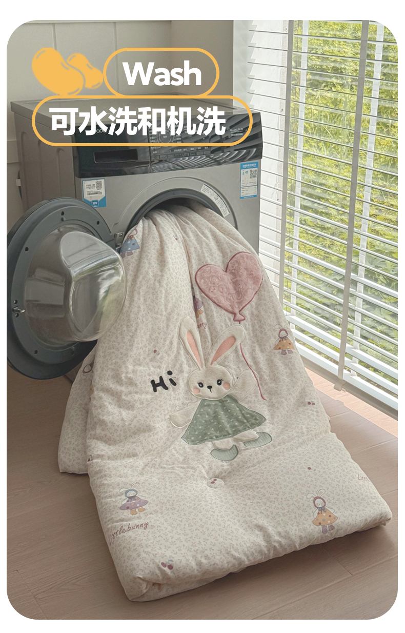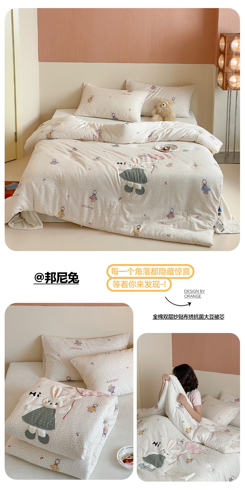 • 91家纺网 家纺一手货源 找家纺 一加一 2025新款全棉双层纱贴布绣抗菌大豆被子被芯 邦尼兔