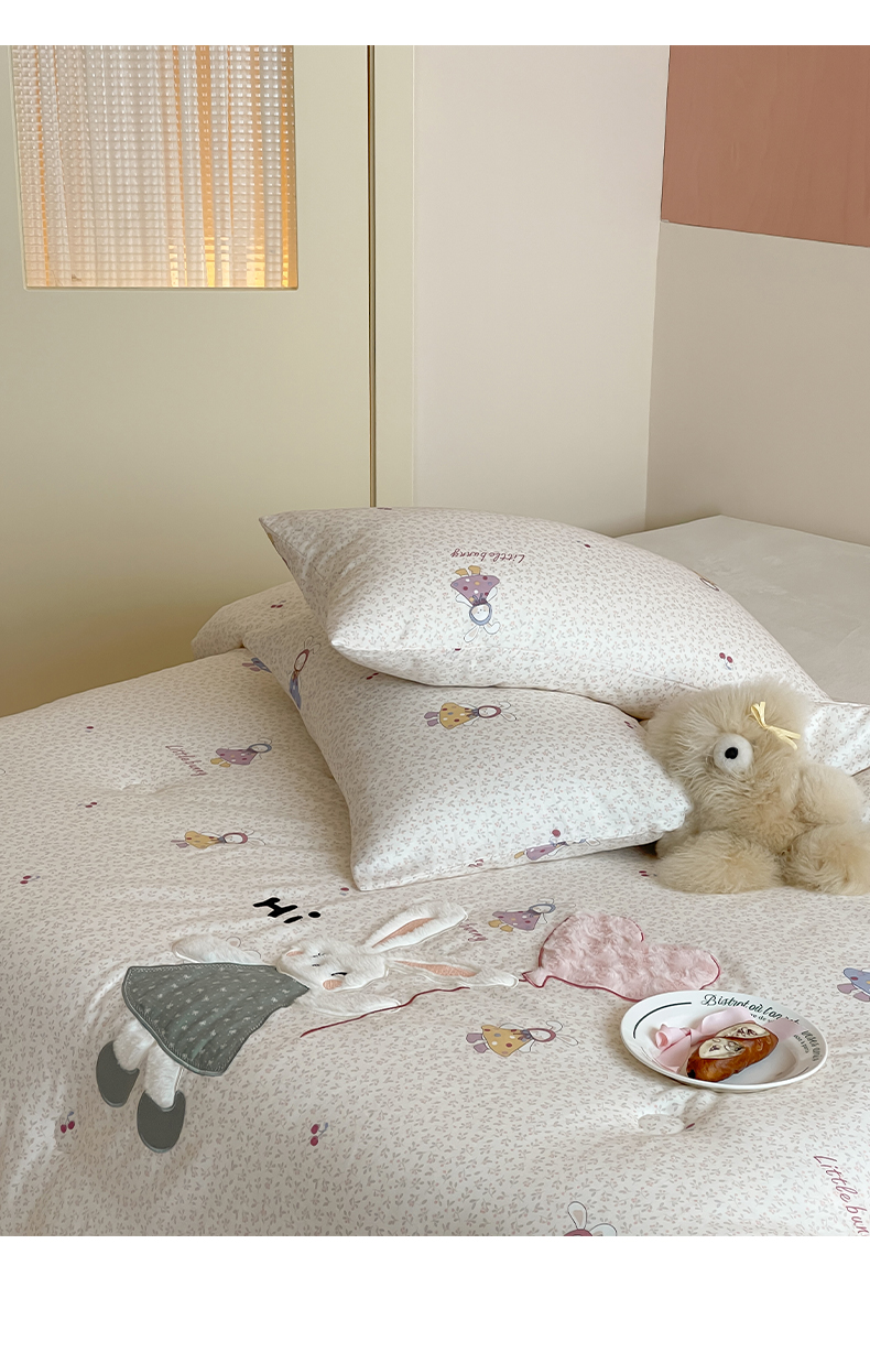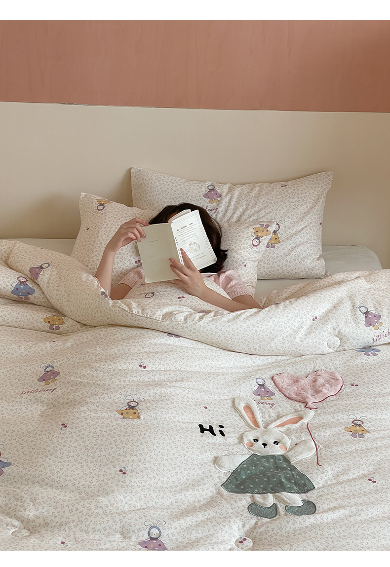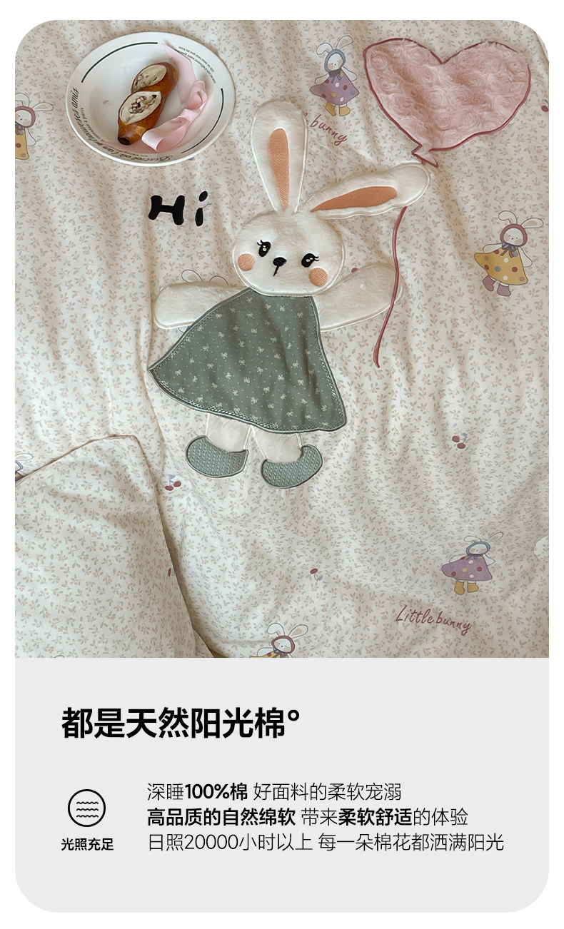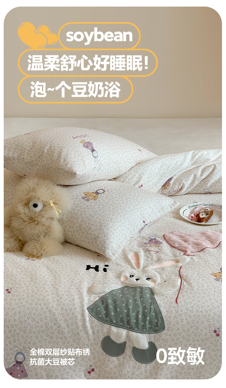 一加一 2025新款全棉双层纱贴布绣抗菌大豆被子被芯 邦尼兔