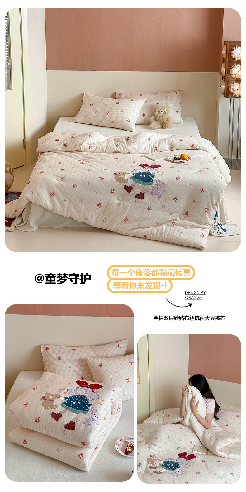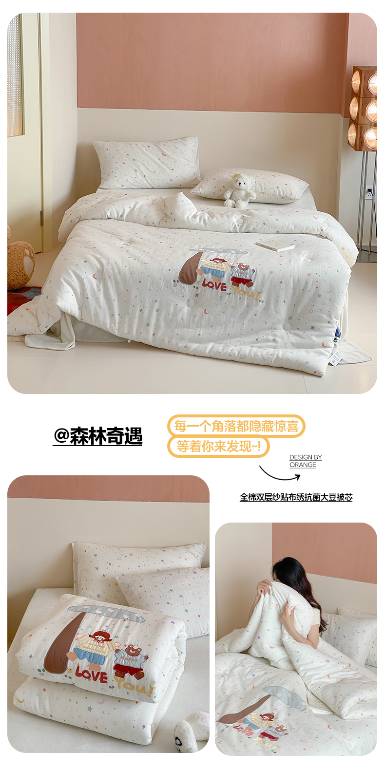 (总)一加一 2026新款全棉双层纱贴布绣大豆夏被-格格乐园,组合图【仅供参考 不可下单】,粉彩早餐熊,粉格小兔,米白小熊,软萌小象,松饼小熊,晚安小象,雾蓝熊语,小熊日记