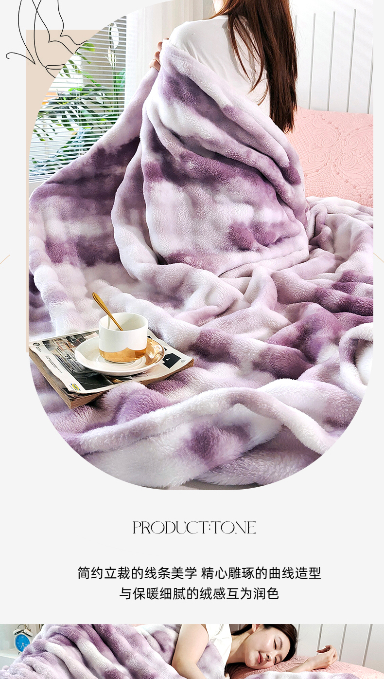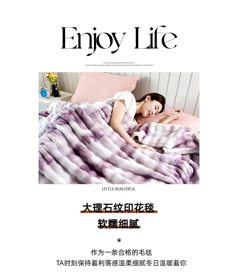 商品名称:安琪家纺 2025新款300G炫彩水墨画仿兔毛绒大泡泡绒印花法兰绒毛毯大理石纹休闲毯沙发盖毯跨境外贸出口专供 水墨画-紫