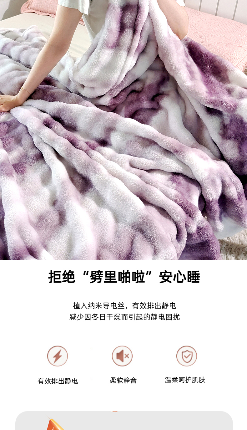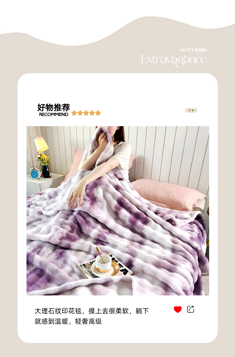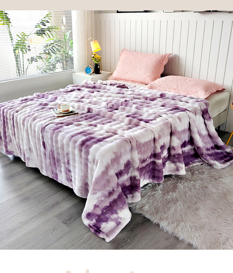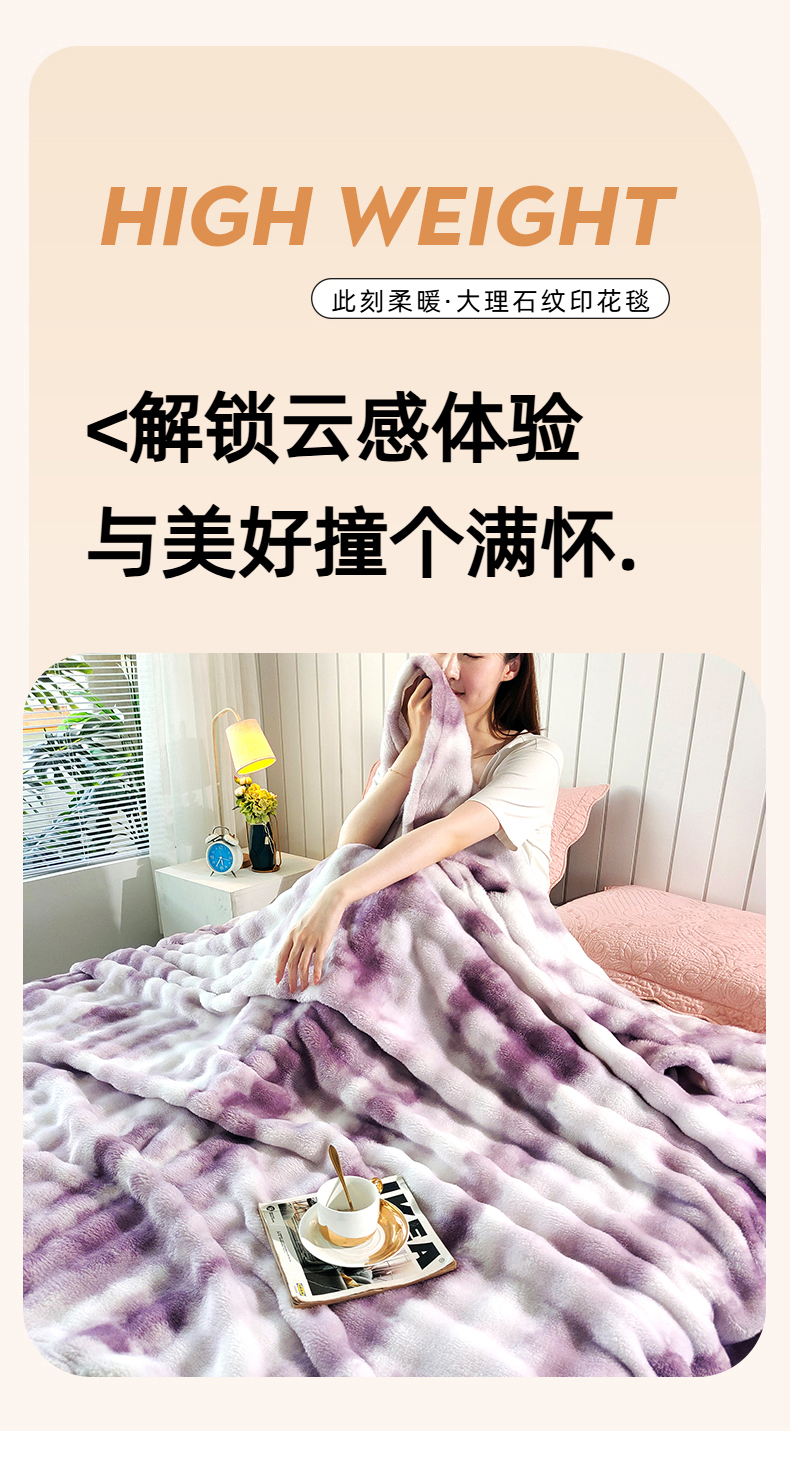 安琪家纺 2025新款300G炫彩水墨画仿兔毛绒大泡泡绒印花法兰绒毛毯大理石纹休闲毯沙发盖毯跨境外贸出口专供 水墨画-紫