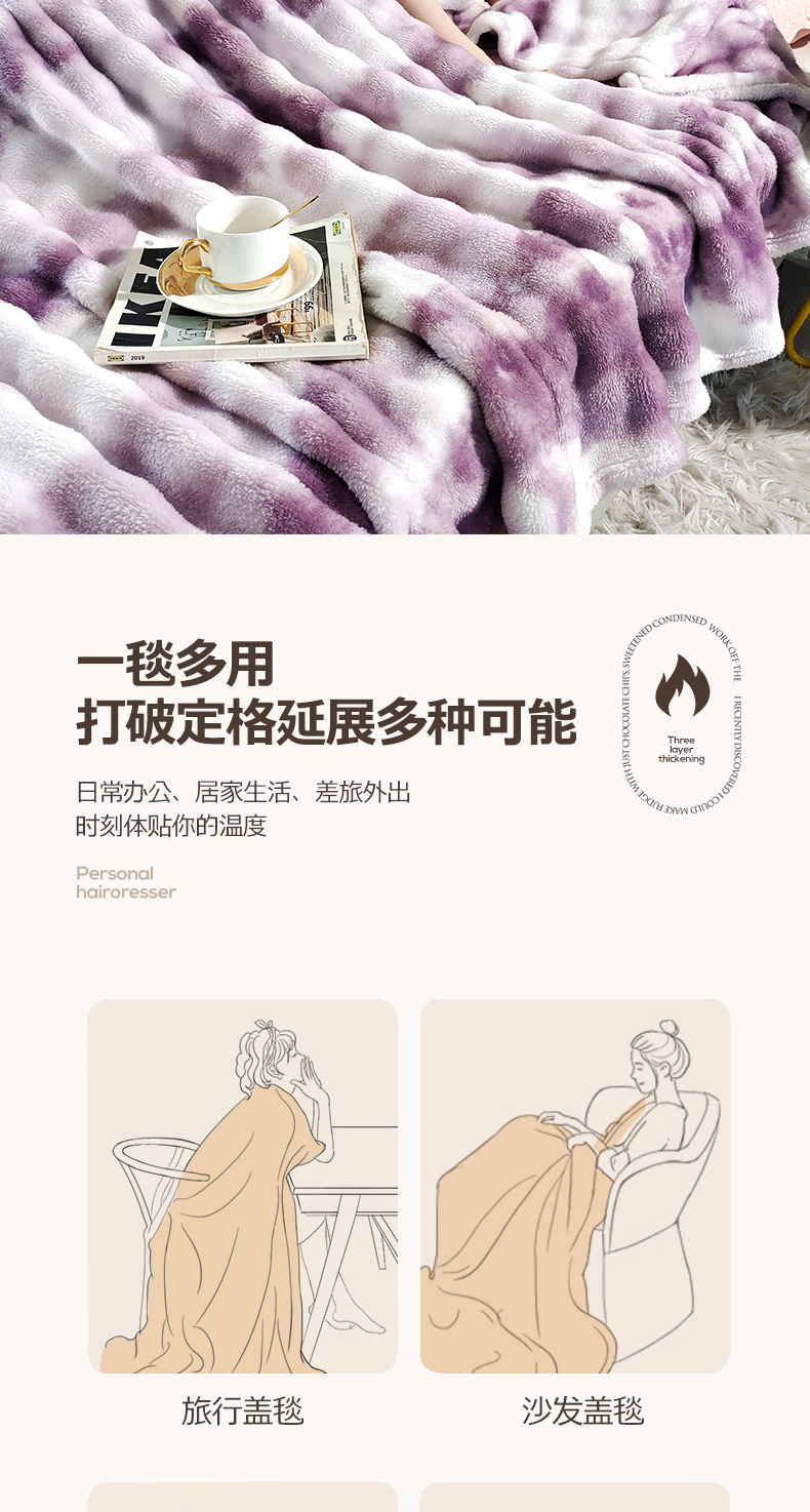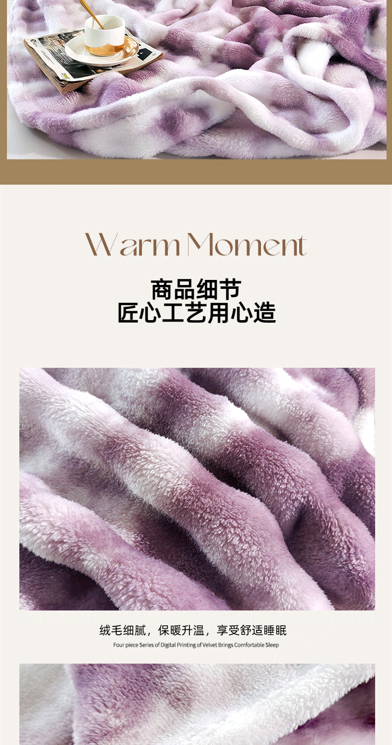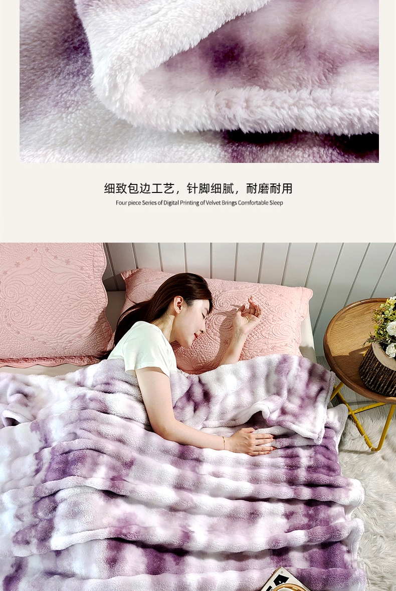 安琪家纺 2025新款300G炫彩水墨画仿兔毛绒大泡泡绒印花法兰绒毛毯大理石纹休闲毯沙发盖毯跨境外贸出口专供 水墨画-紫