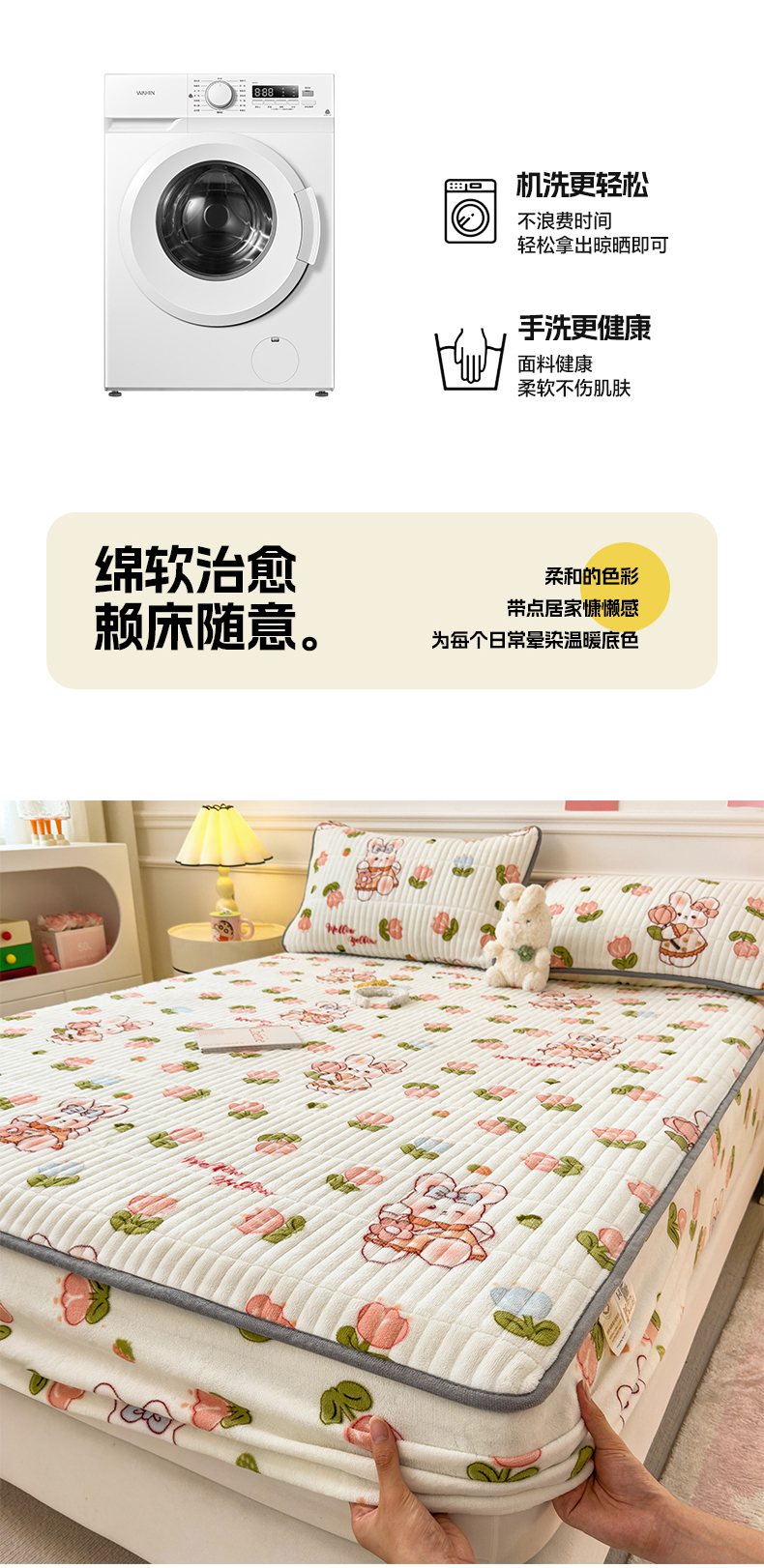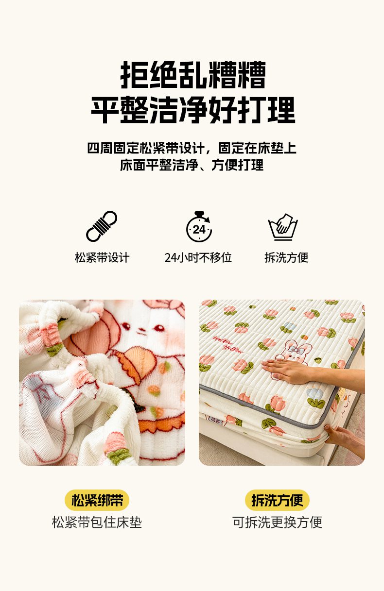 • 91家纺网 家纺一手货源 找家纺 (总)摩妮卡 2025新款牛奶绒贴布绣绒床笠保护床垫三件套,采花的小兔,免兔的日常,内向的小兔,盛日庆祝,甜点魔法师,星星餐点