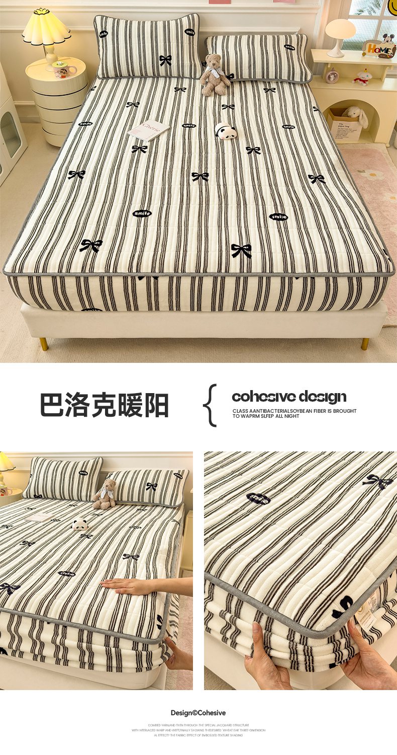 (总)摩妮卡 2025新款加厚保暖牛奶绒夹棉绣花床垫三件套,呆呆熊-蓝,呆呆熊-黄,呆呆熊-咖,Kitty猫-白,Kitty猫-粉,Kitty猫-紫