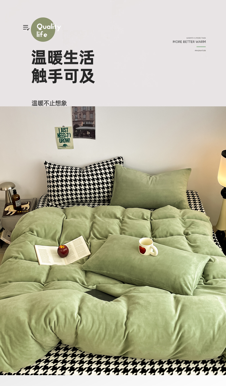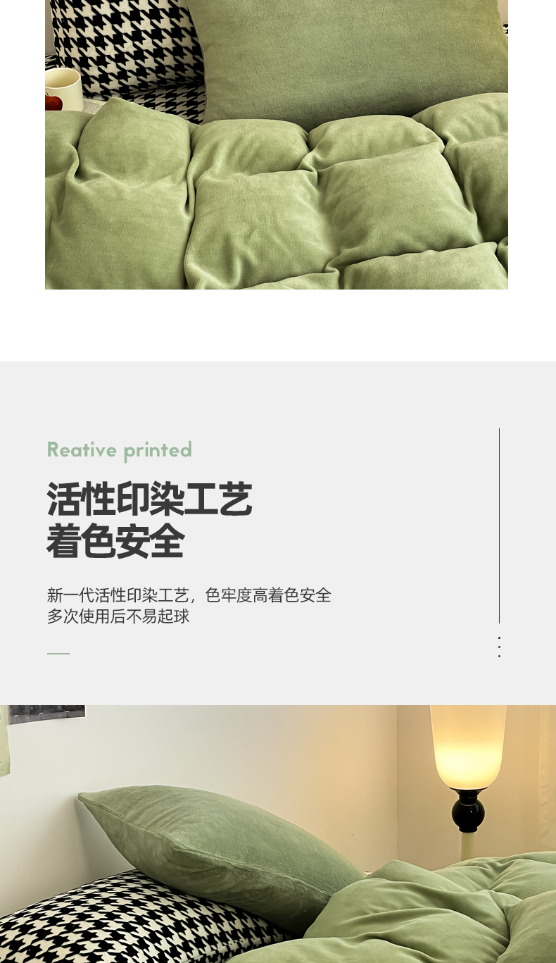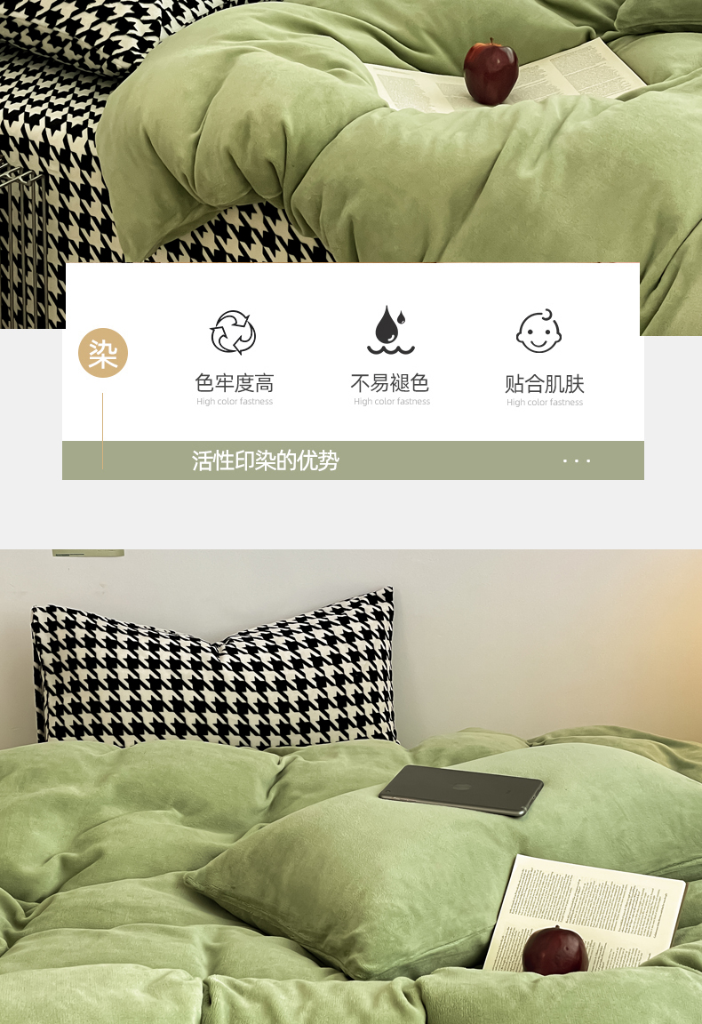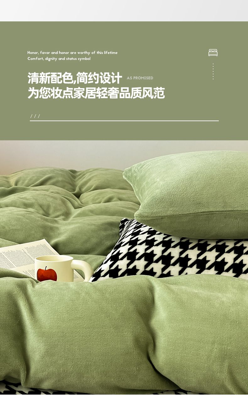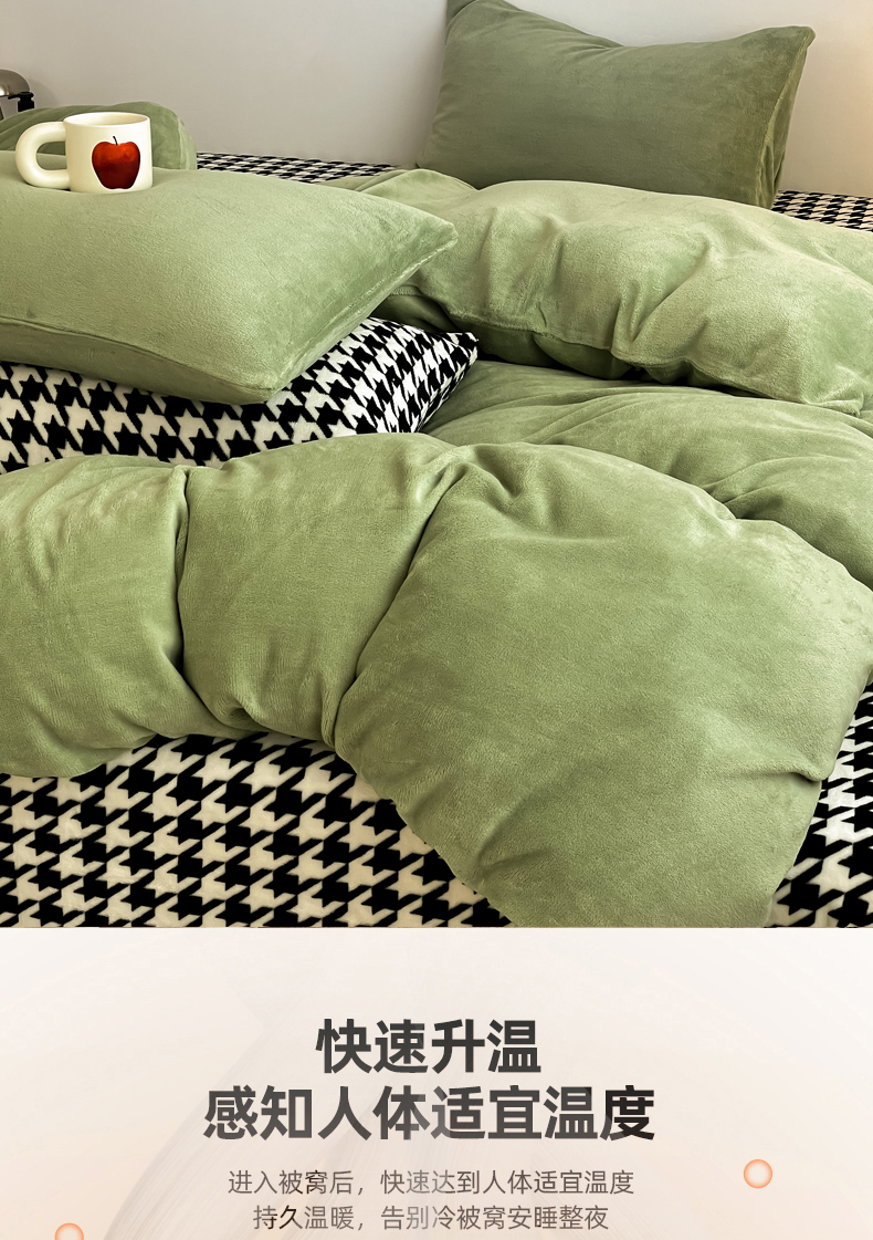 当前位置: 91家纺网 > 商品网购 > 床品套件 > 四件套 > 其它四件套 > 三朵家纺 2025新款法莱绒混搭四件套 苹果绿