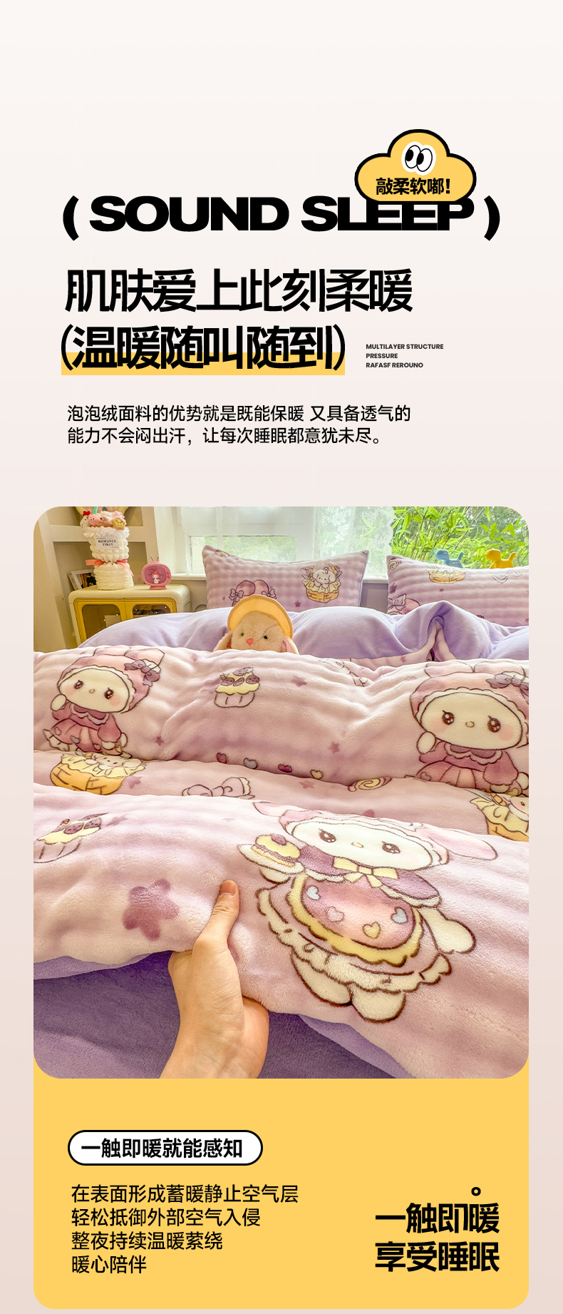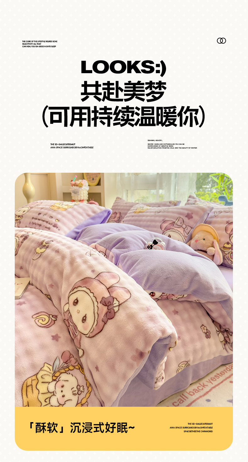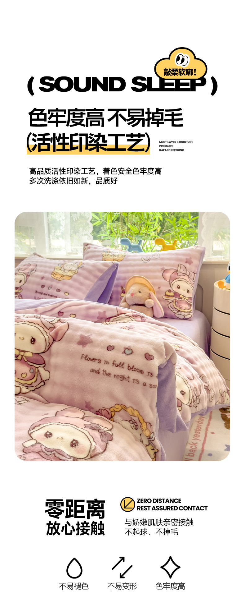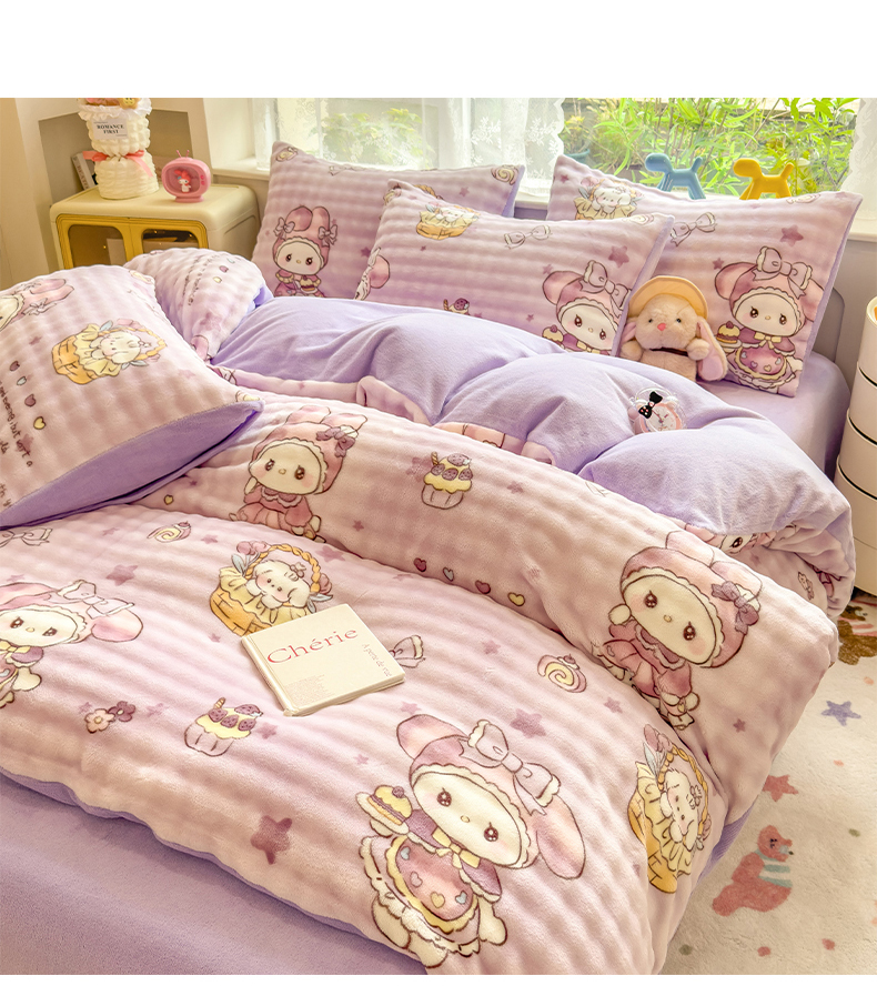 当前位置: 91家纺网 > 商品网购 > 床品套件 > 四件套 > 牛奶绒四件套 > 摩妮卡 2025新款小清新加厚260克牛奶绒泡泡绒四件套 紫韵美乐蒂