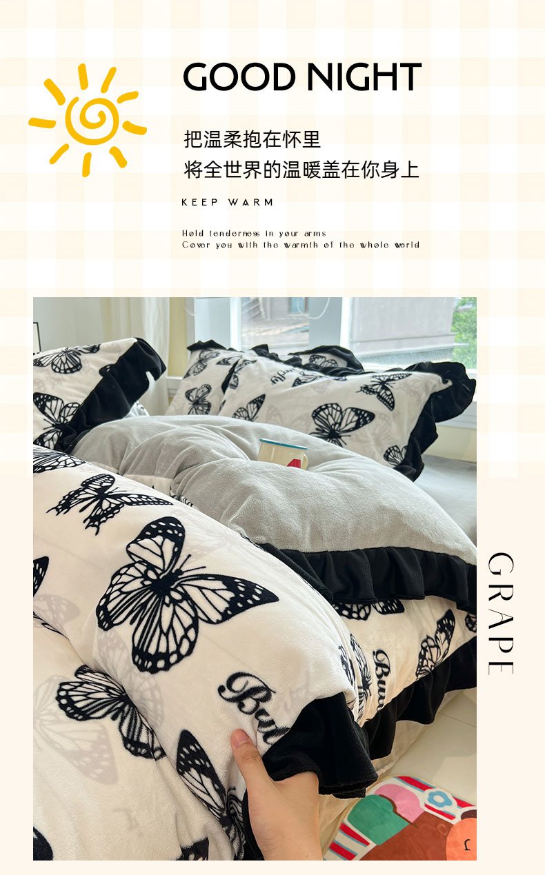 商品名称:(总)首尔家纺 2025新款牛奶绒法式黑边款四件套系列