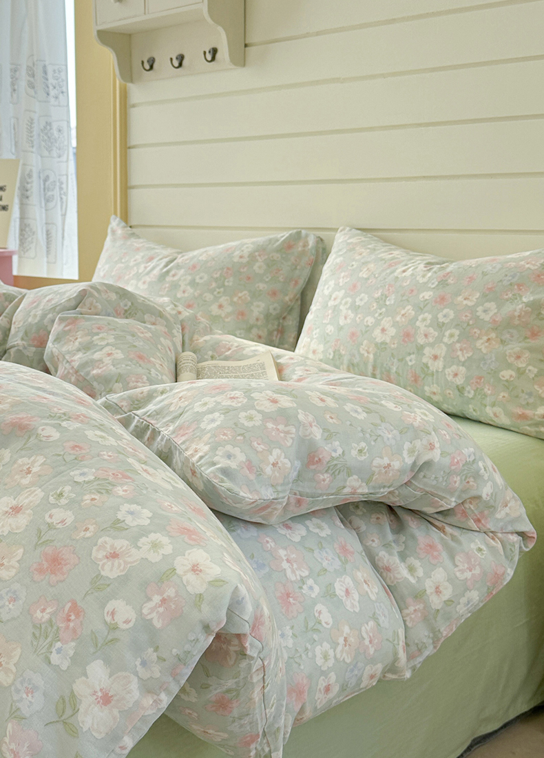 (总)麦伦家居 2025多功能床品全棉纯棉A类有氧双层纱+豆豆绒四件套荷叶边系列,组合图仅供展示不可下单,星星人,童梦木马,糖炒栗子,花田粉兔,白月光,桃夭夭,豹纹猫咪,空谷幽兰,晚秋,花棠,莫奈花园,蒂芙尼-粉,青芜,花样年华,椿野