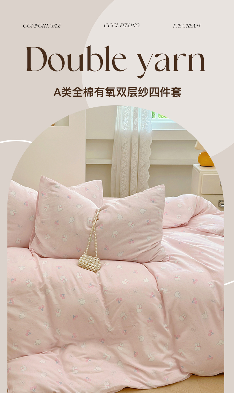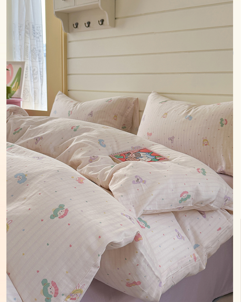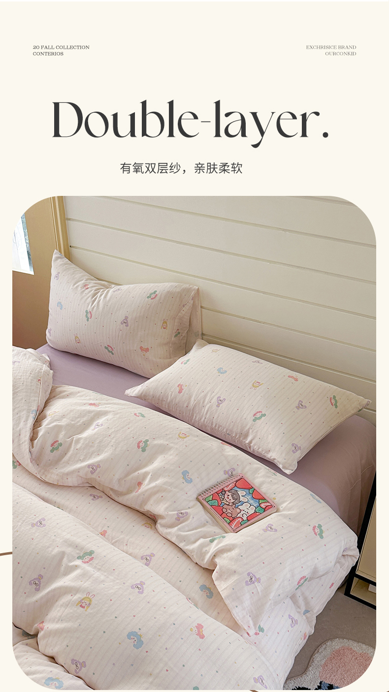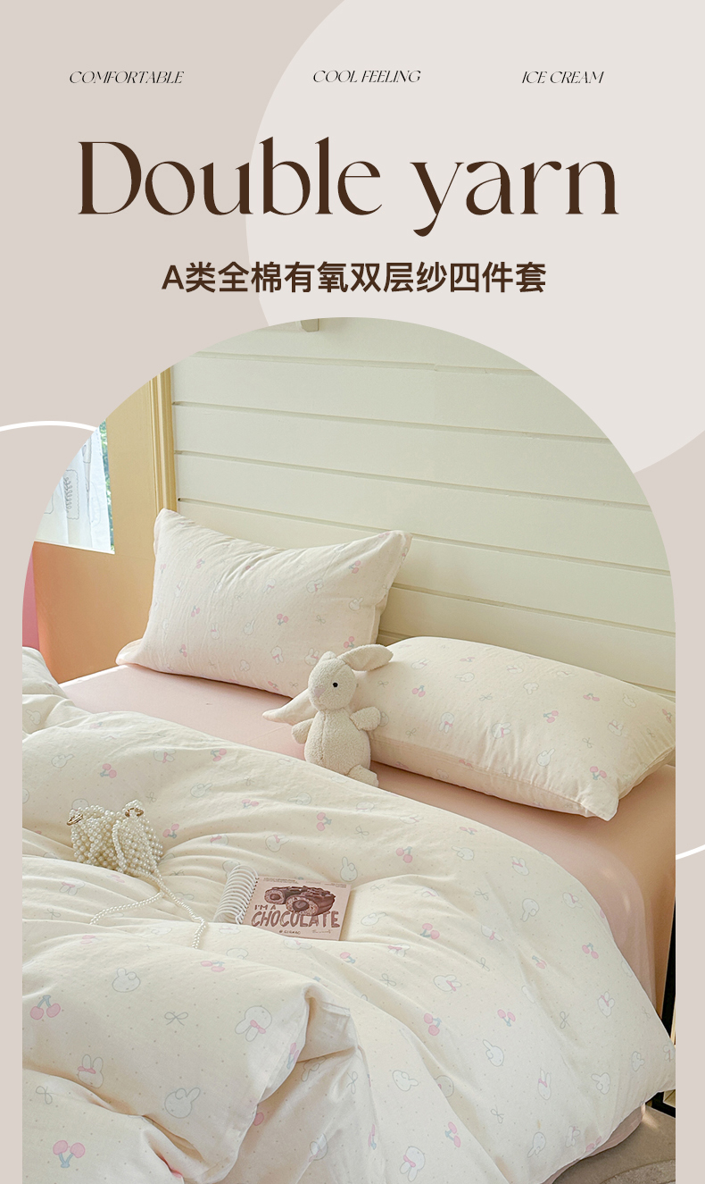 (总)麦伦家居 2025新款A类全棉纯棉有氧双层纱人字纹提花四件套,巴巴兔,冰激凌,彩蝶,方格猫咪,花丛狗狗,卷毛狗,兰花兔,莓莓芝士粉,水果派,西瓜猫,小红帽,小星星