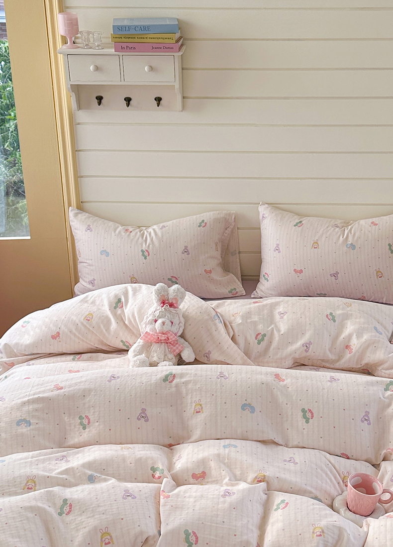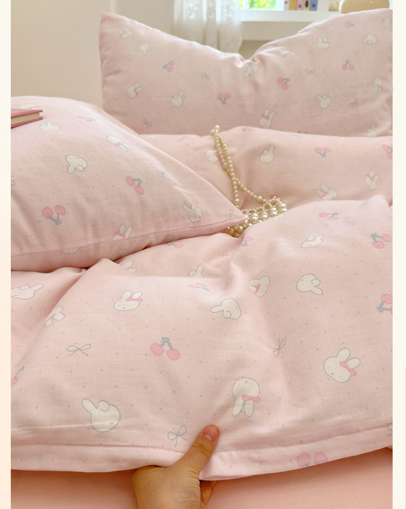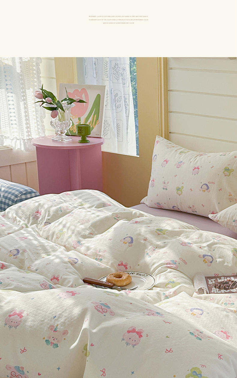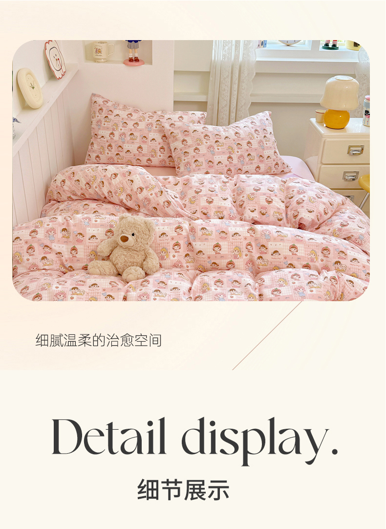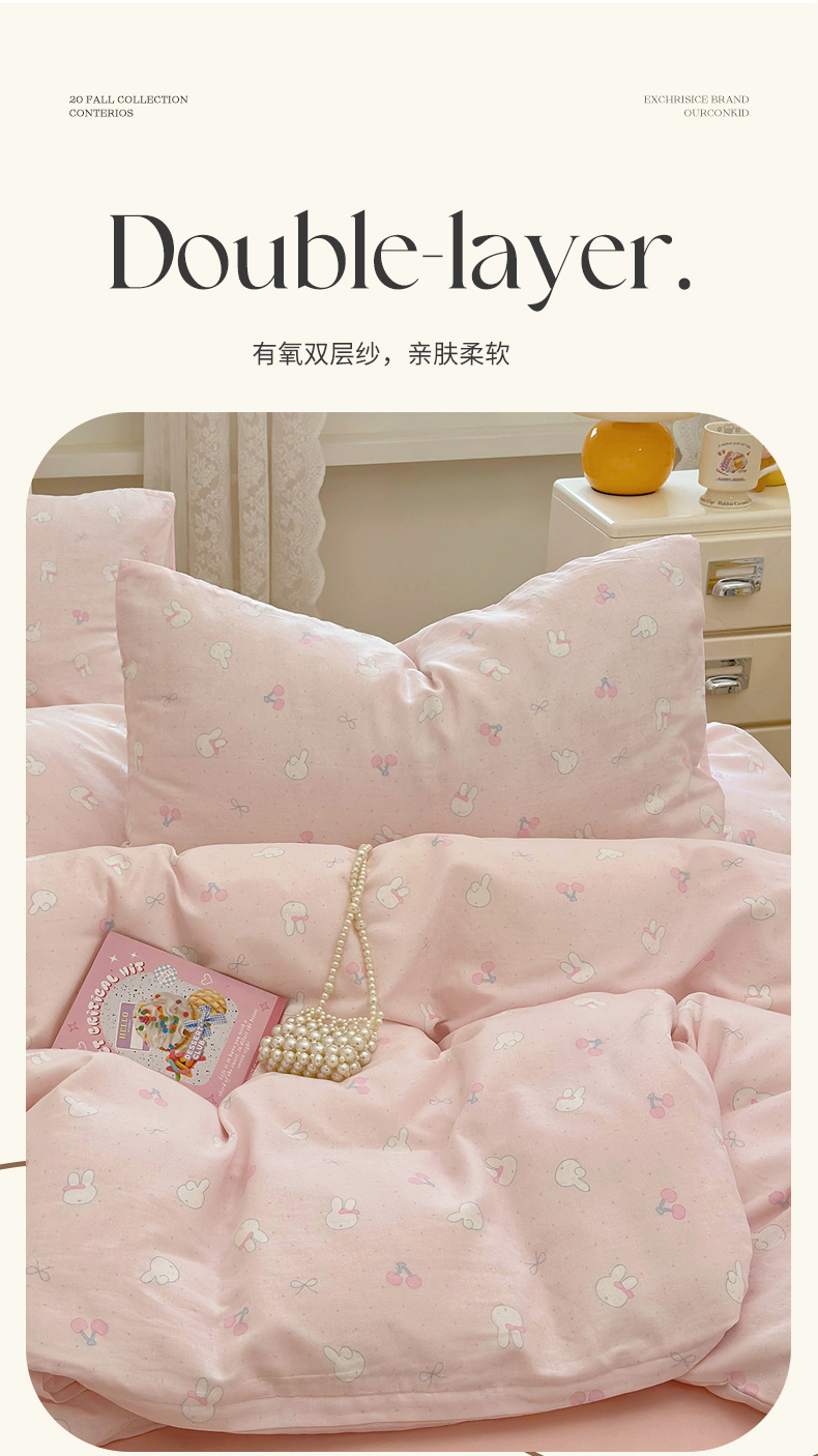 (总)麦伦家居 2025新款A类全棉纯棉有氧双层纱人字纹提花四件套,巴巴兔,冰激凌,彩蝶,方格猫咪,花丛狗狗,卷毛狗,兰花兔,莓莓芝士粉,水果派,西瓜猫,小红帽,小星星