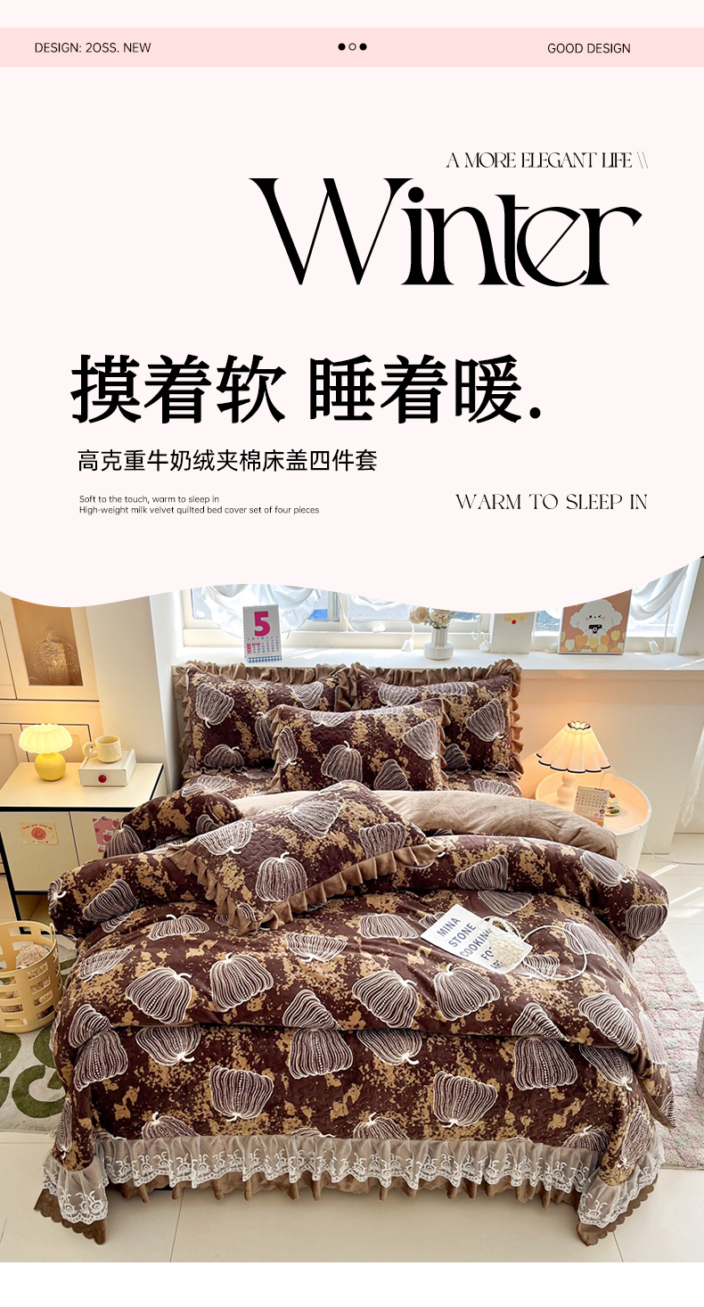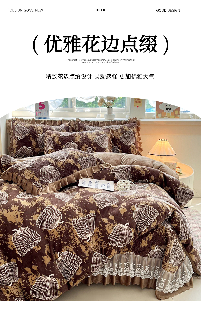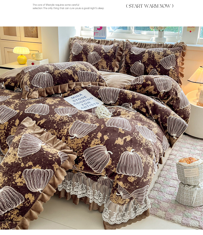 当前位置: 91家纺网 > 商品网购 > 床品套件 > 四件套 > 牛奶绒四件套 > 铠畅 2025新款加厚牛奶绒床盖四件套 南瓜派