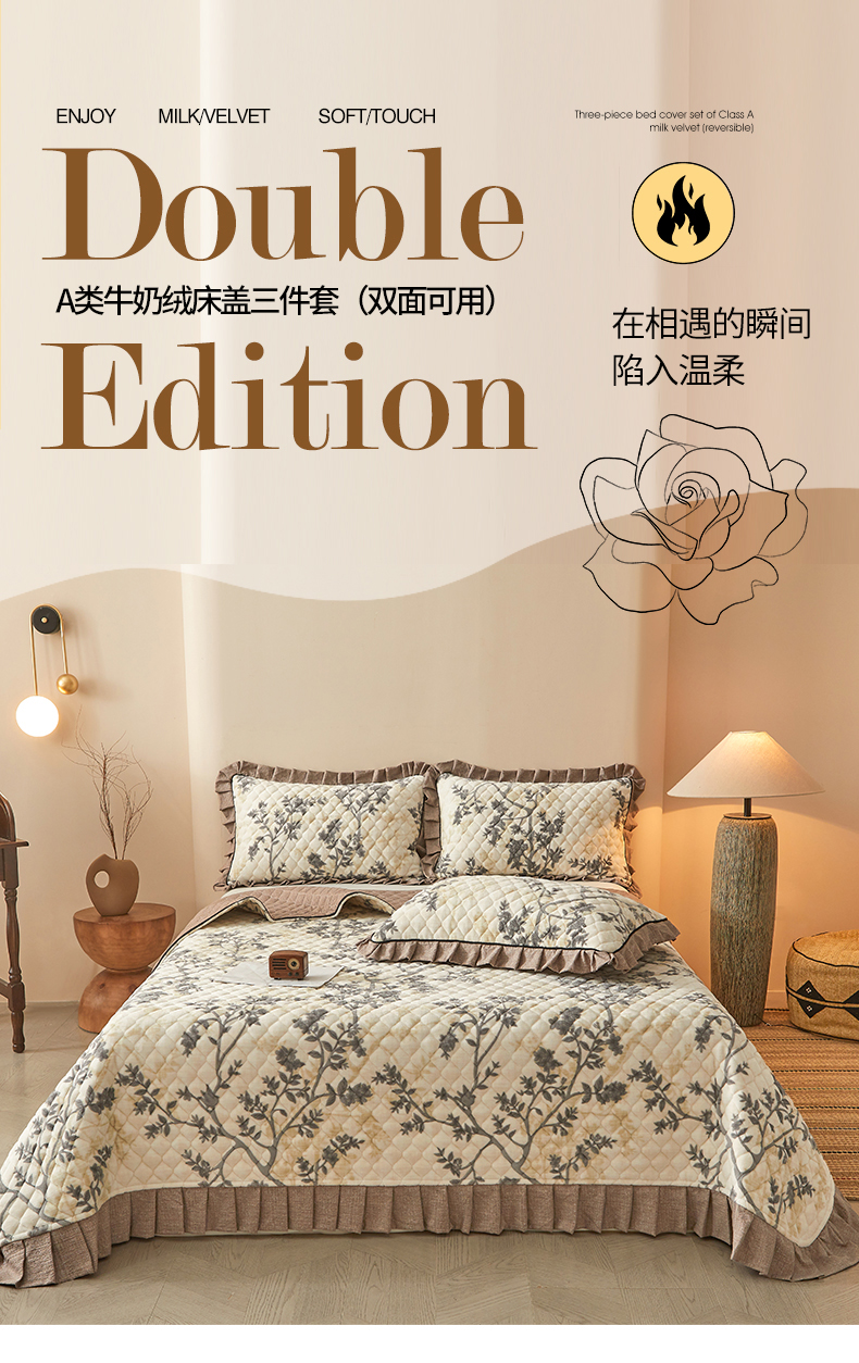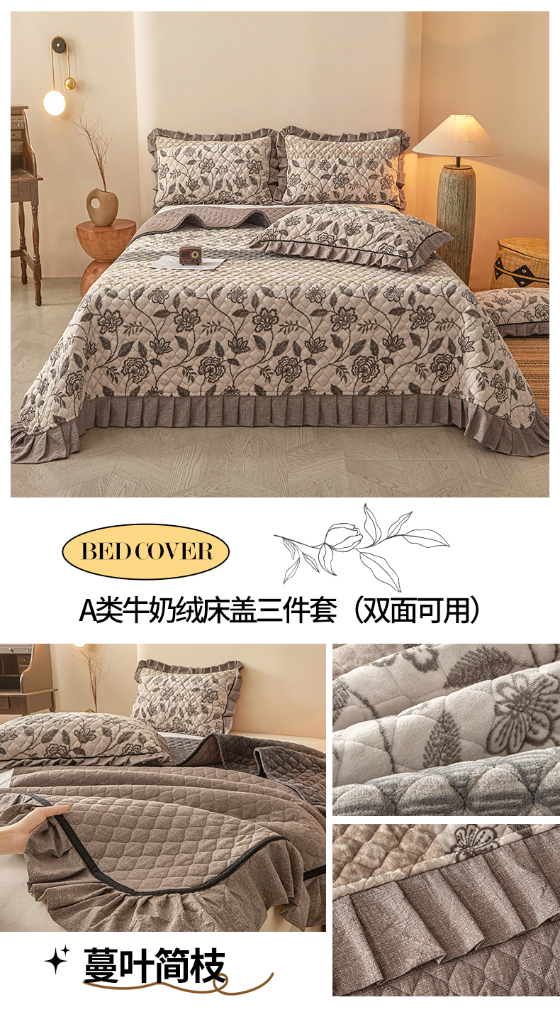 (总)宜凡家纺 2025新款牛奶绒床盖三件套(双面可用)