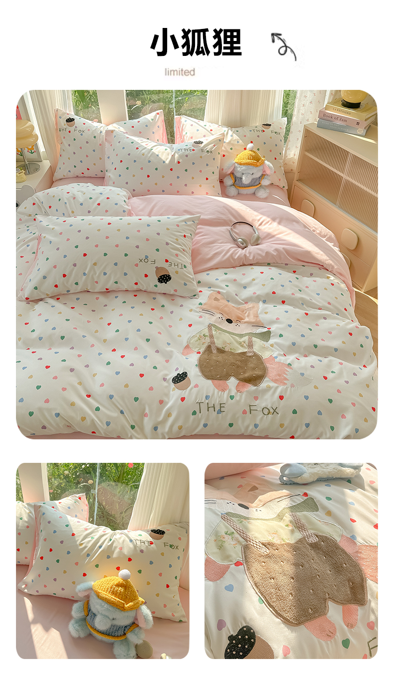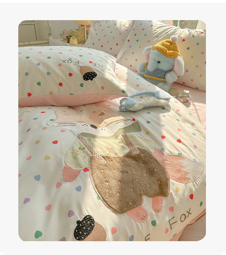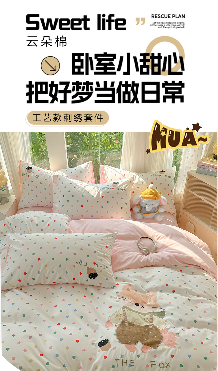 当前位置: 91家纺网 > 商品网购 > 床品套件 > 四件套 > 全棉普通四件套 > 子钦家纺 2025新款云朵棉水洗棉贴布绣床单床笠四件套 小狐狸