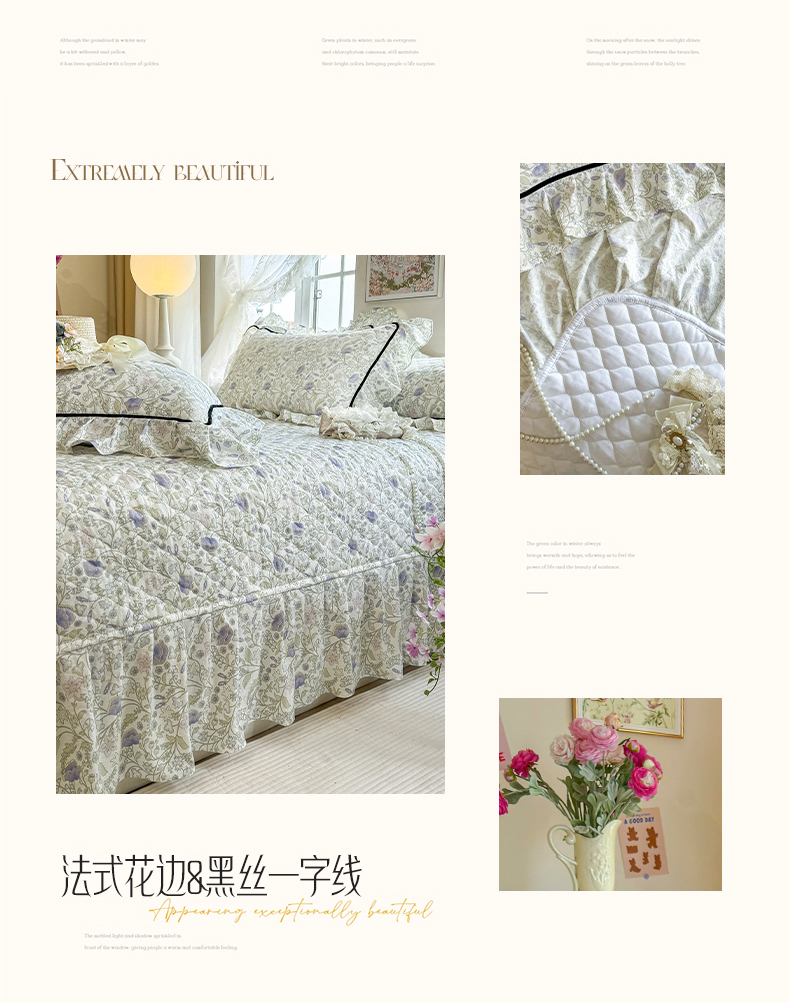 当前位置: 91家纺网 > 商品网购 > 床品套件 > 三件套 > 宜凡家纺 2025新款A类水洗珍珠棉床盖三件套 洛拉